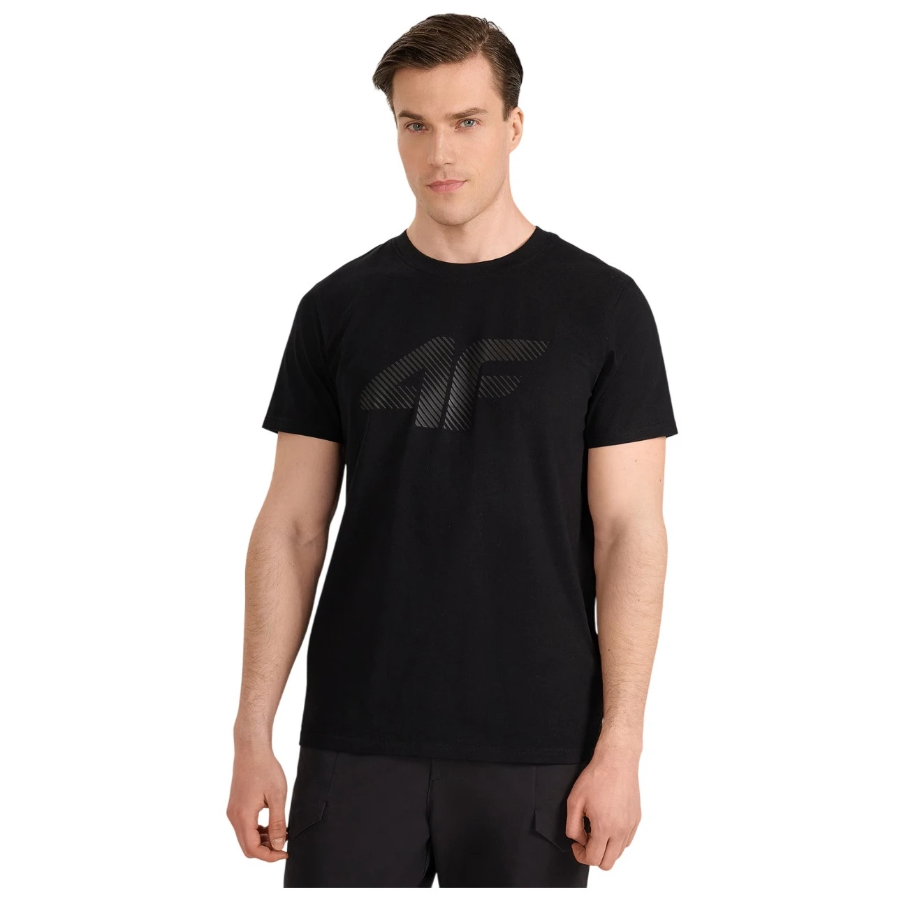 A 4F Tshirt M2257 férfi póló puha, 100% pamut anyagból készült, 180 gsm súlyú szövetből. Regular szabású, bordázott kerek nyakkivágással és sportos „4F” nyomattal a mellkason.