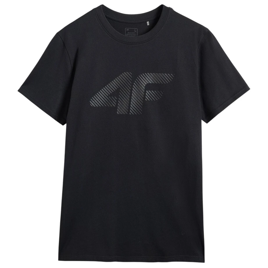 A használt single jersey kötött anyag sima felülettel magas komfortot és természetes rugalmasságot biztosít. A regular szabás és a standard csípőig érő hossz biztosítja a szabad mozgást és a kényelmes viseletet minden helyzetben. A kerek nyakkivágás finom bordázattal van befejezve, ami rugalmasságot és ellenállást biztosít a kifakulással szemben. Az egyszínű kivitelt egy feltűnő „4F” nyomat egészíti ki az elején, amely sportos karaktert kölcsönöz a pólónak, és megtöri a minimalista megjelenését.