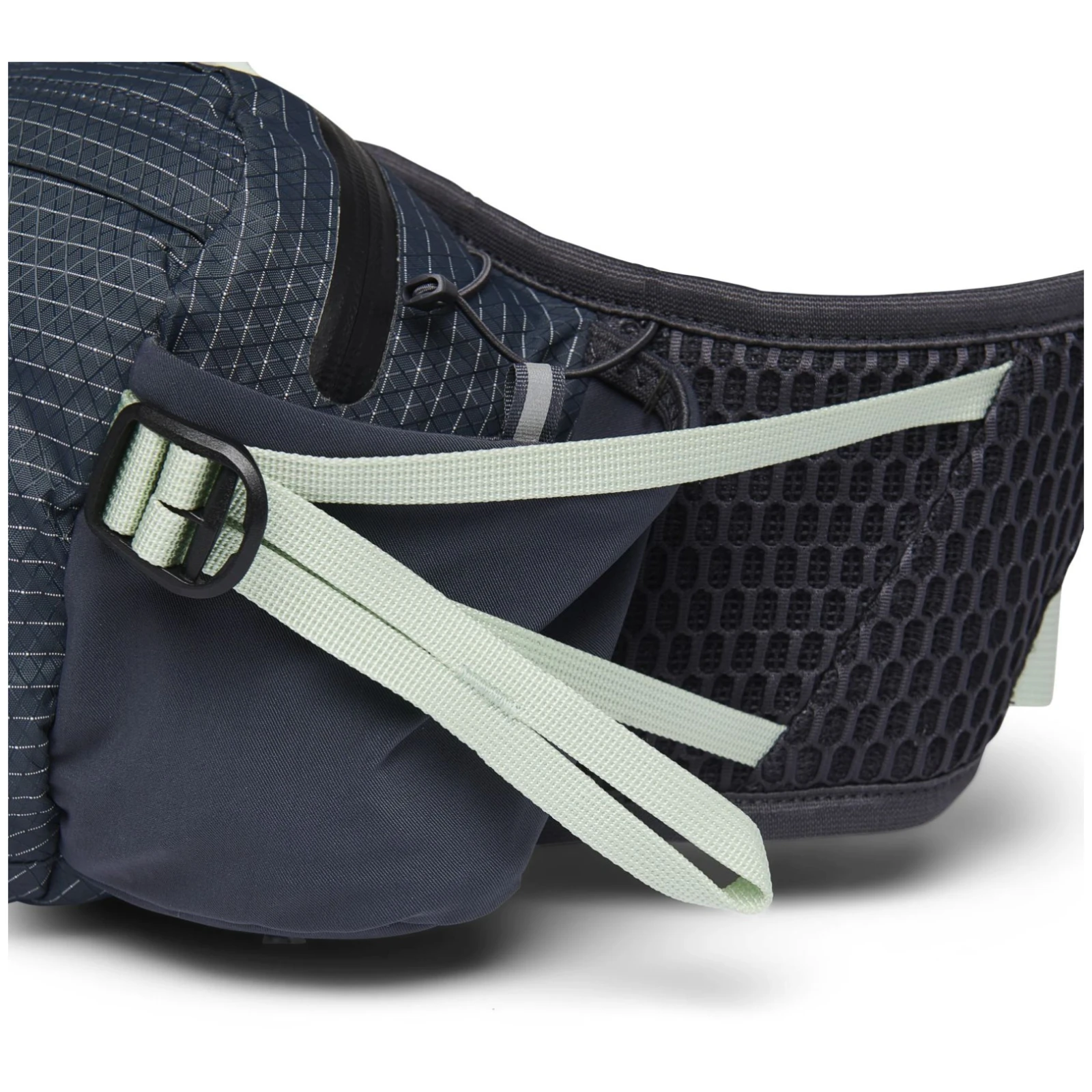 A zsebek úgy vannak elhelyezve, hogy minden gyorsan kéznél legyen. A két oldalsó zseb tárolja a vizes palackokat, az elülső cipzáras zsebek az apróságokat, és belül van egy zseb a kulcsoknak is. A fő rekesz vízálló cipzárral rendelkezik, így a benne lévő dolgok enyhe esőben is szárazon maradnak. Az övtáska ráadásul újrahasznosított anyagokból készült, amelyek kímélik a természetet.