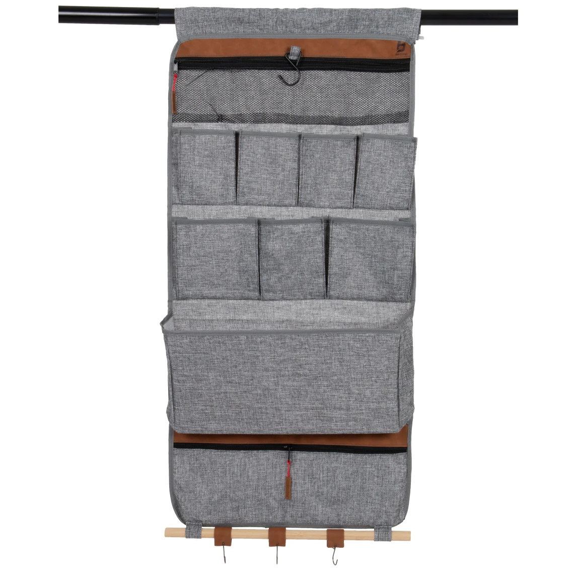 A rekeszek mellett értékelni fogja a rugalmas pántokat, a kampókat és a hátul található rejtett tárolóhelyet. Akár tépőzárral, szalaggal vagy kampóval akasztja fel, szilárdan és megbízhatóan tart.