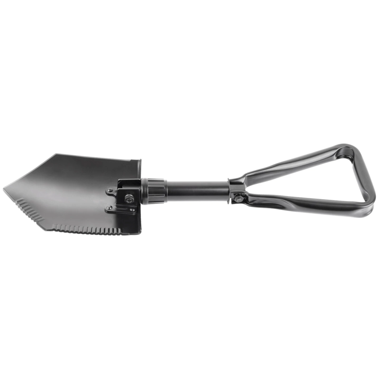 A fogazott pengének köszönhetően a keményebb anyagokkal is megbirkózik, míg a beépített reteszelőszeggel ellátott csőszerű markolat szilárdságot és biztonságos használatot biztosít. Összecsukva a kanál a mellékelt csomagolásba illeszkedik, így könnyen szállítható.