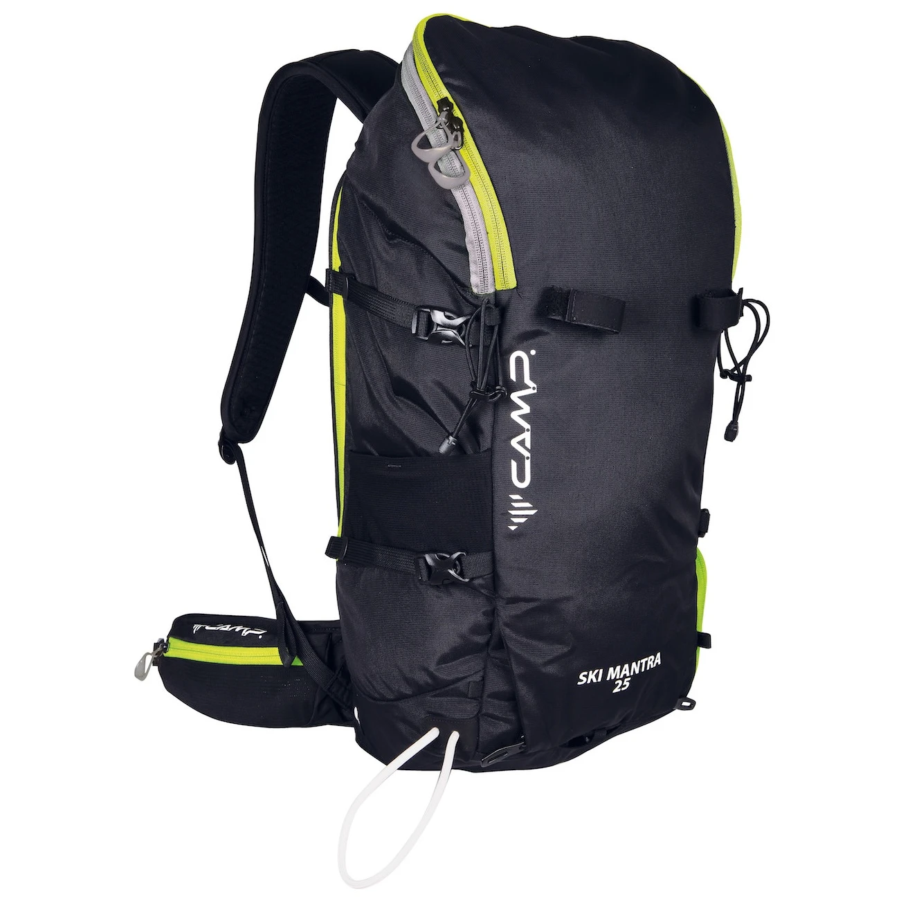 A Camp Ski Mantra 25-ben minden megtalálható, ami egy egész napos sítúrához vagy egy nehezebb, pályán kívüli naphoz szükséges. A 25 literes űrtartalom lehetővé teszi, hogy néhány réteg ruhát, élelmiszert és egy teljes lavinabiztonsági felszerelést is bepakolj. A hátizsák fő része háromrétegű, rendkívül tartós 420D nylonból készült.