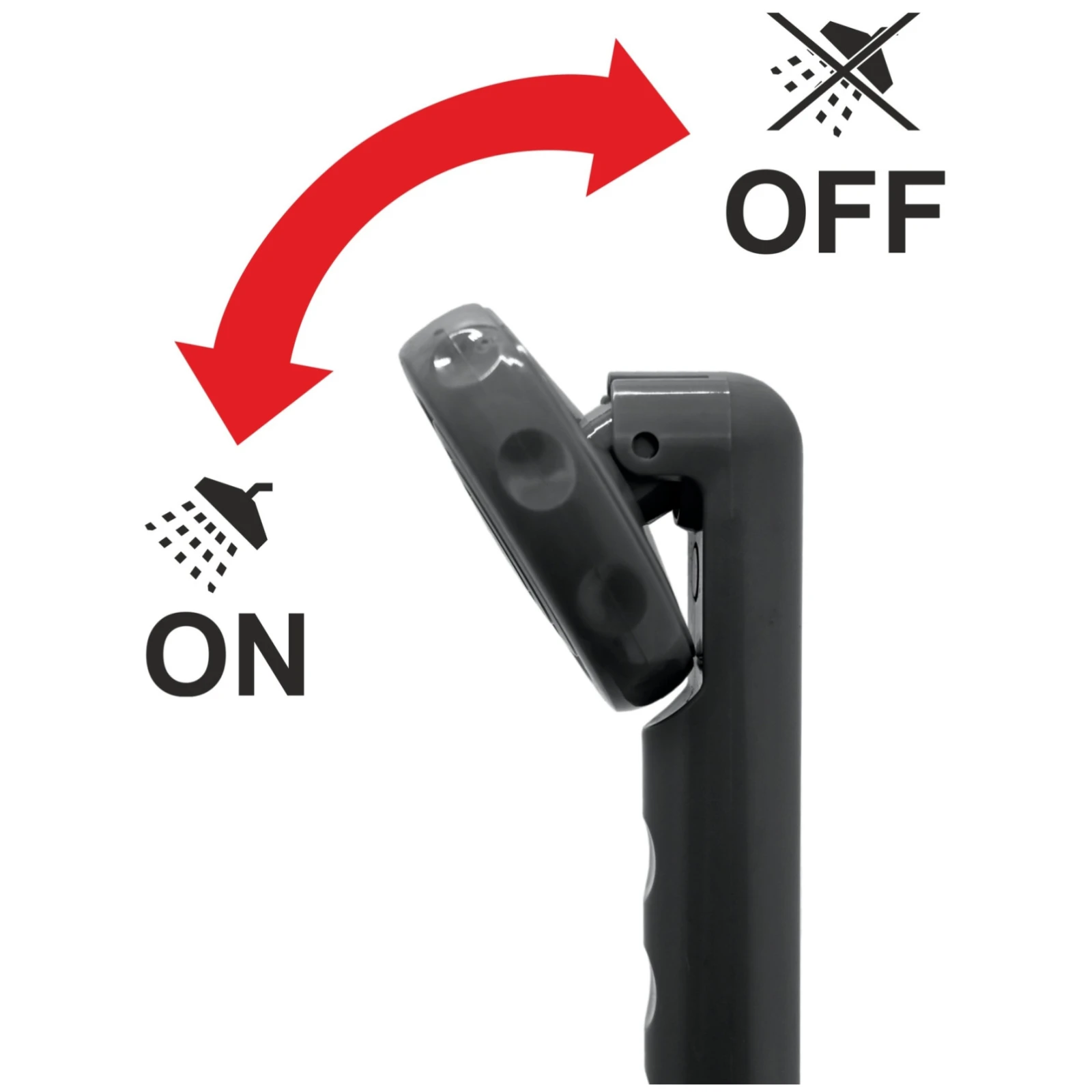 - egyszerű kezelés – a víz áramlásának leállítása/elindítása a fej döntésével