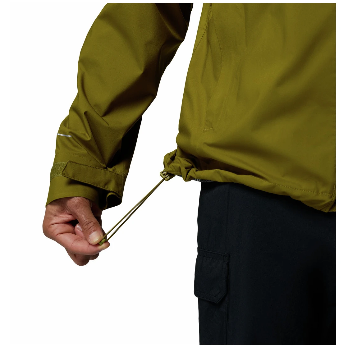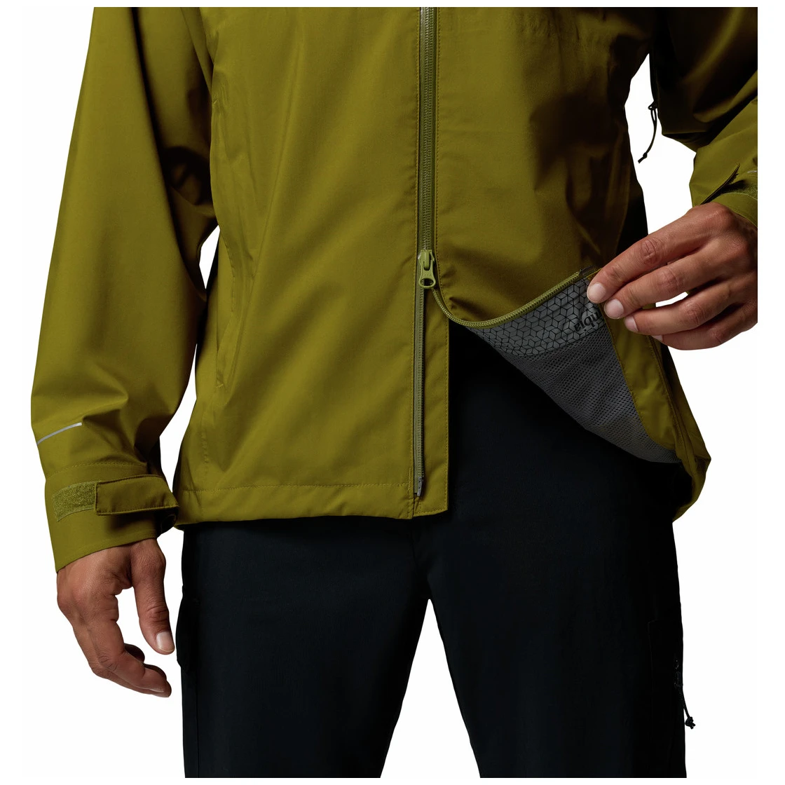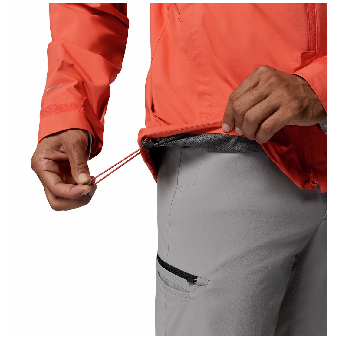 Az állítható kerületű és ragasztott karimájú beépített kapucni segít megvédeni az esőtől és a széltől. A állítható ujjvégek és a húzózsinórral ellátott alsó szegély lehetővé teszi az aktuális körülményekhez való alkalmazkodást, míg a meghosszabbított hátsó rész növeli a hát védelmét. A karvédő hozzájárul a kényelemhez a dzseki teljes felcipzározásakor.