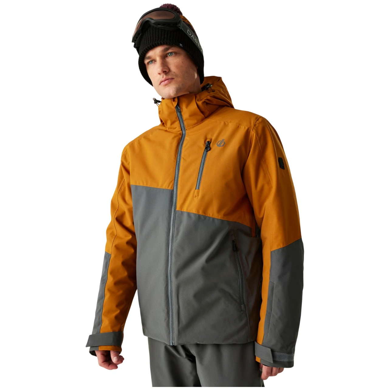 A Dare 2b márkájú férfi Halfpipe III Jacket kabátot a nagy igénybevételnek kitett síelők és a téli kalandok szerelmeseinek tervezték. A vízálló, légáteresztő és szélálló ARED 30/30 újrahasznosított poliészterből készült, és az újrahasznosított poliészter meleg töltettel erős szélben is melegen tart.