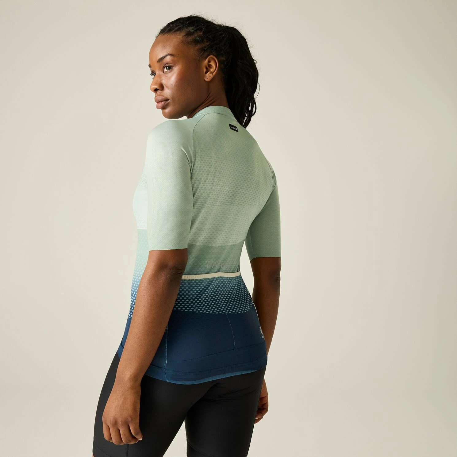A teljesen végigcipzározható kialakítás lehetővé teszi a hőmérséklet könnyű szabályozását, a hosszú hátsó rész elasztikus szegéllyel biztosítja a stabilitást kerékpározás közben, a lézerrel vágott ujjvégek pedig hozzájárulnak a sima és aerodinamikus kivitelhez. A praktikus hátsó zsebeket a Stay Seen fényvisszaverő részletek egészítik ki a jobb láthatóság érdekében, a UPF 50+ UV-védelem pedig napon való kerékpározáskor nyújt védelmet.