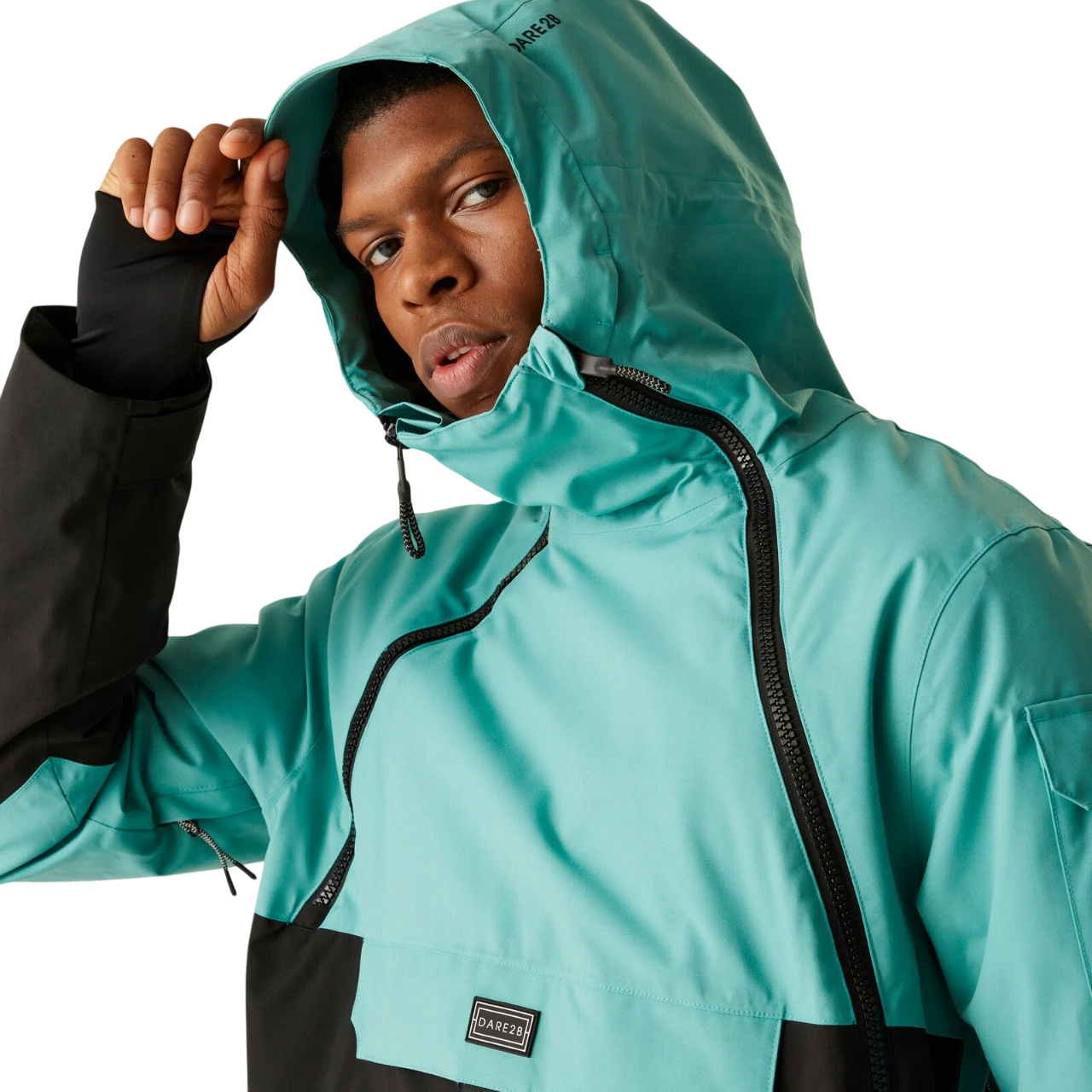 A technikai kapucni dróttal ellátott silddel, magas gallérral és összehúzó pántokkal megbízható védelmet nyújt a szél és a hó ellen. A hüvelykujj bújtatók növelik a kényelmet hosszabb lejtőn való viselés esetén is.