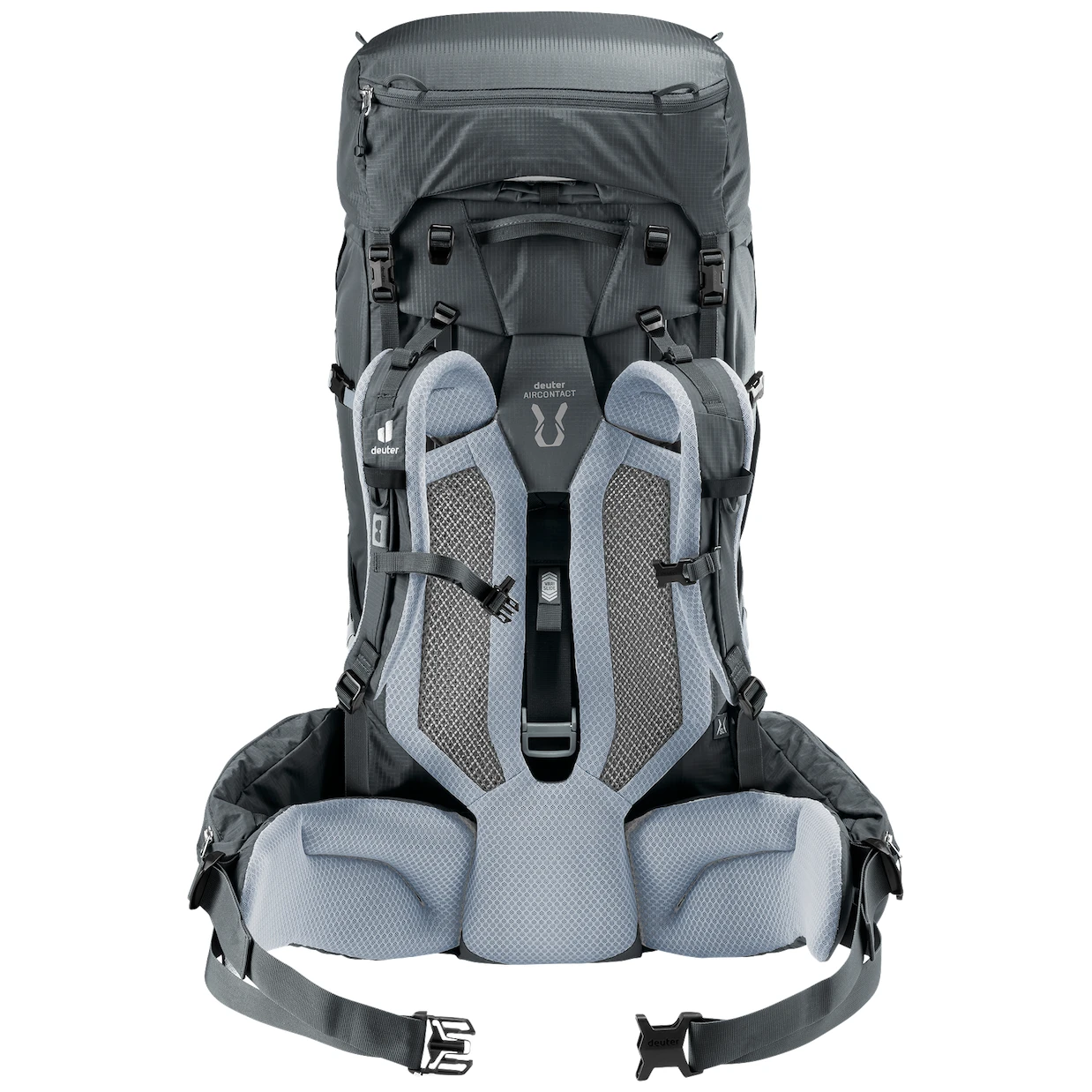 A hátizsák erős anyagból készült, amely szakadásálló. Rendkívül könnyű, és a súly 70%-a a gazdagon párnázott, ergonomikusan formázott derékpánt nehezedik a jobb teherelosztás érdekében. Az Aircontact Pro hátrendszer funkcionális habbal és szellőzőhálóval biztosítja a kényelmes légcserét minden mozdulatnál. Az alumínium keret merevítők segítenek megtartani az alakot. A VariSlide technológiának köszönhetően a hát hosszát a magasságának megfelelően állíthatja be . Az ActiveFit vállpántok szintén ergonomikusan formázottak , és 2 irányban állítható mellkaspánttal rendelkeznek, biztonsági síppal Az eredmény egy hátizsák, amely hosszú kilométereken át és nagyobb terhelés mellett is kényelmes marad.