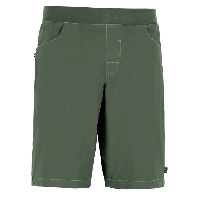 Modern férfi rövidnadrág, az E9 Trd Men's organikus pamutból és elasztánból készült. A rövidnadrág nagyon kényelmes, elasztikus derékpánttal rendelkezik, kapocs nélkül, és mindkét oldalon van egy hurok a kefének és más, mászáshoz szükséges apróságoknak. Két elülső zseb található rajta a kéznek és egy hátsó zseb. Olaszországban készültek, minimális környezetszennyezéssel, és a hangsúlyt az extravagáns kivitelezésre, az egyedi designra és a mászás közbeni kényelemre helyezik.