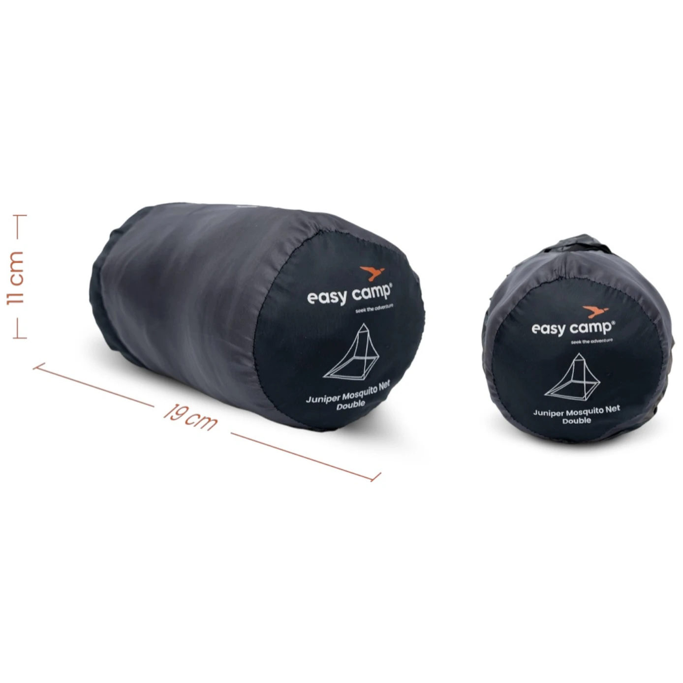 A szúnyogháló két személy számára készült, és a behajtható éleknek köszönhetően jobb védelmet nyújt a földhöz közel is. A sarkokban rögzítési pontok találhatók, így könnyen rögzíthető cövekekkel. A magasság állítható, és tartalmaz egy tartórudat, amely segít megőrizni a formát és több teret biztosít belül.