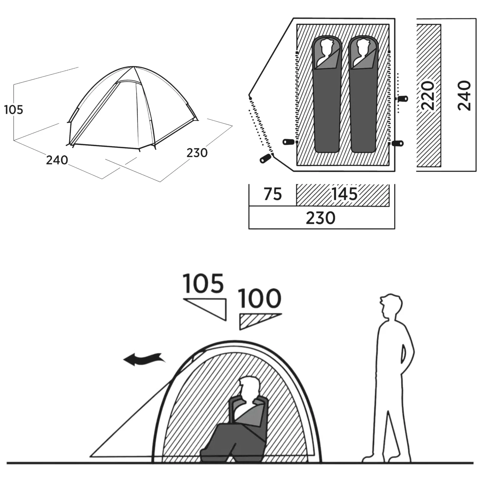 240x230x105 cm