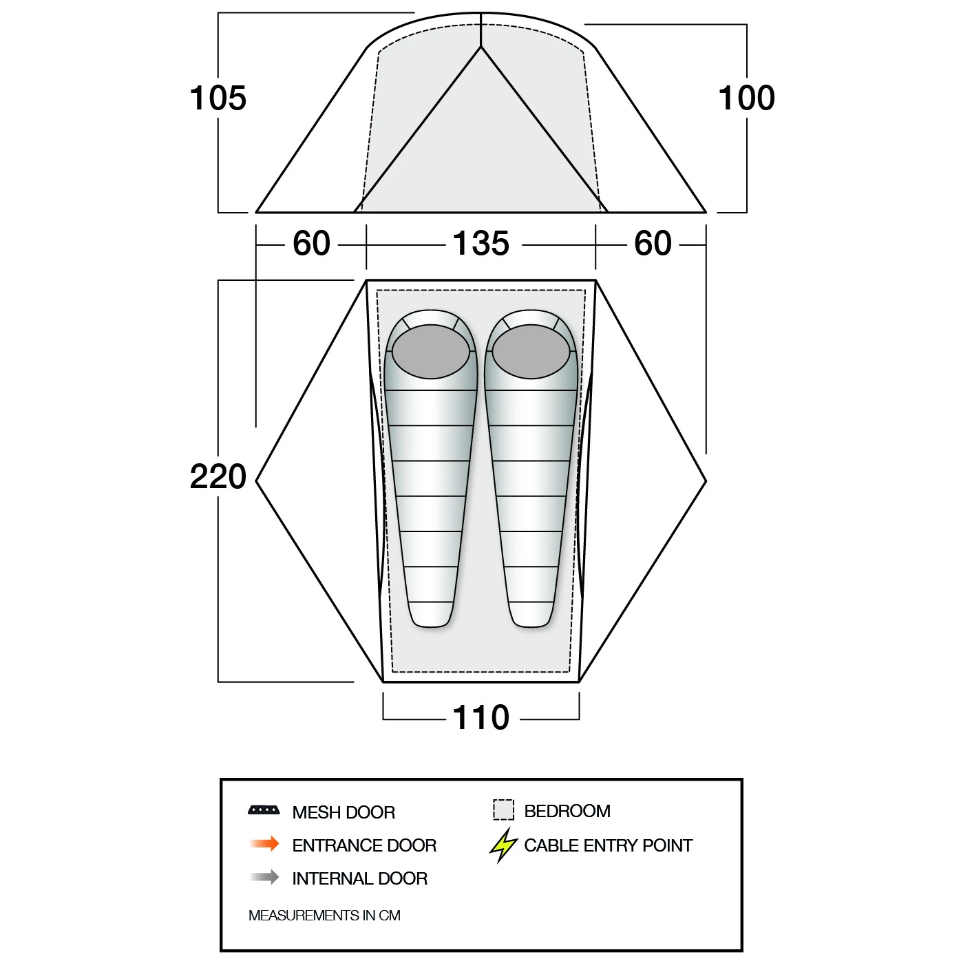 2 bejárat egy előszobával a sátorba való könnyű bejutásért