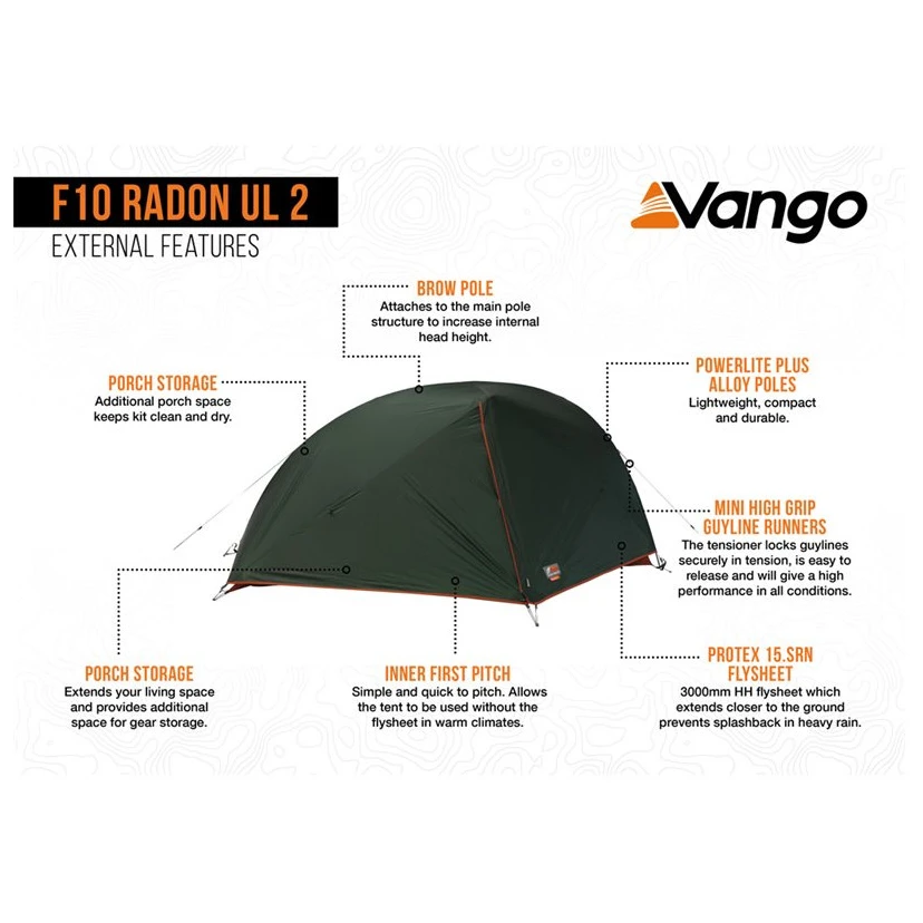 A skót Force Ten márka ultrakönnyű, 2 személyes Radon UL 2 sátra tökéletes választás a legkeményebb körülmények között, ahol megbízhatóan támogatja Önt. Különösen alacsony súlyával, minőségi anyagaival és egyszerű felépítésével nyűgöz le, amely a nagyobb hely és stabilitás érdekében kiegészíthető egy túrabottal. A TXS-rendszer az X-alakú zsinóroknak köszönhetően a sátor oldalirányú mozgásának korlátozásával hozzájárul a nagyobb stabilitáshoz az igazán kihívást jelentő szélviszonyok között is.