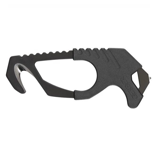 A szerkezet egyik felét egy acél horog alkotja a hevederek elvágásához. A külső élei tompítottak, így hektikus helyzetekben sem áll fenn a véletlen sérülés veszélye. Használat után a horog biztonságosan elhelyezhető a strapabíró tokban.