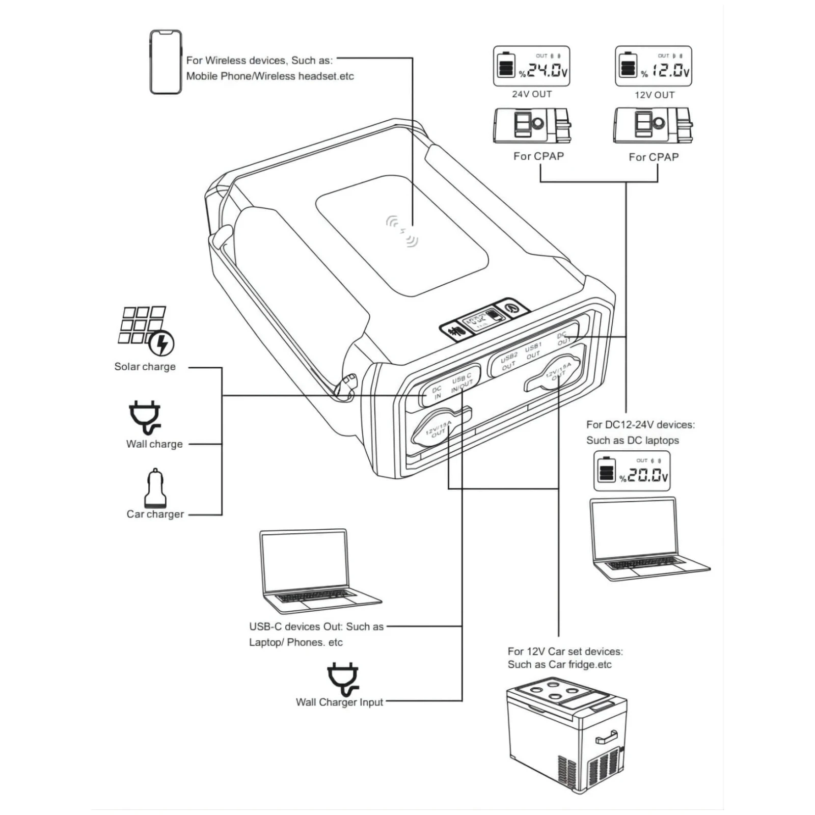 - 1 x DC-port bemenet: 18-24V/4A (96W max.)