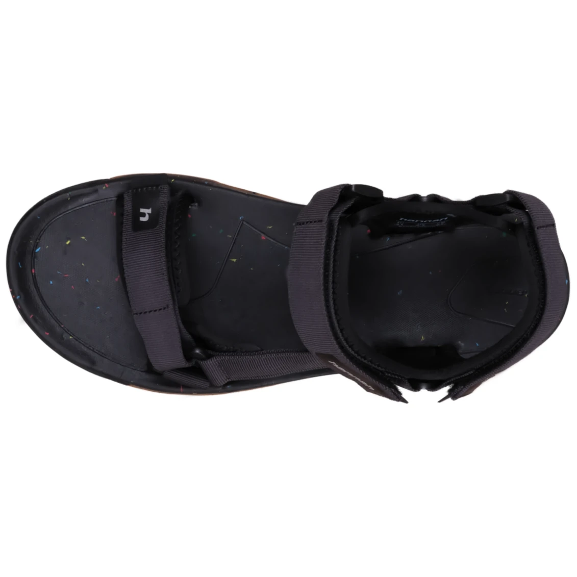 A láb stabilitását a cipőben a jól bevált hárompontos tépőzáras rögzítés biztosítja, amelyet pontosan a lábfej alakjához igazíthat. Ez a rendszer az újrahasznosított poliészterből készült gyorsan száradó pántokkal együtt garantálja, hogy a szandálok biztonságosan a helyükön maradjanak.