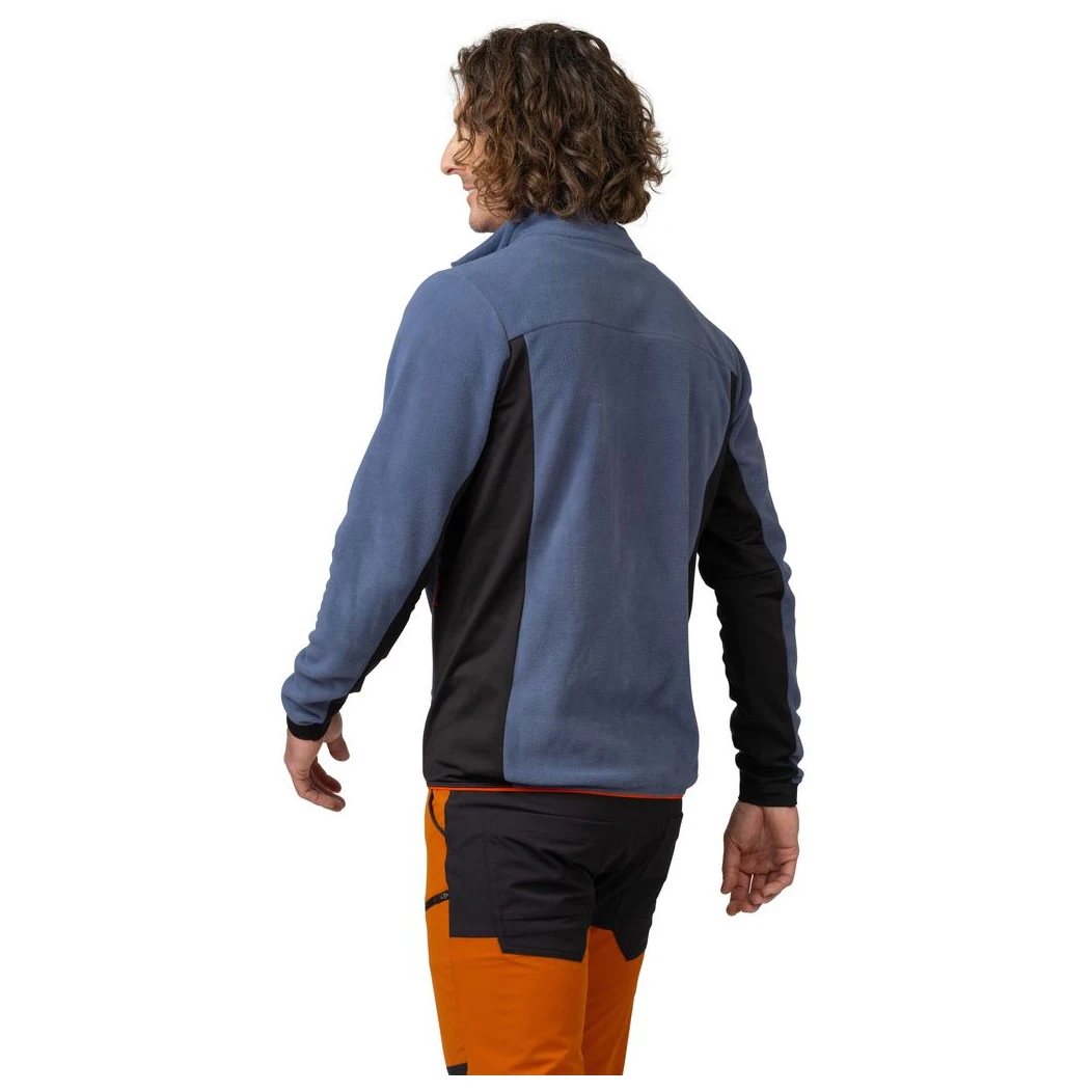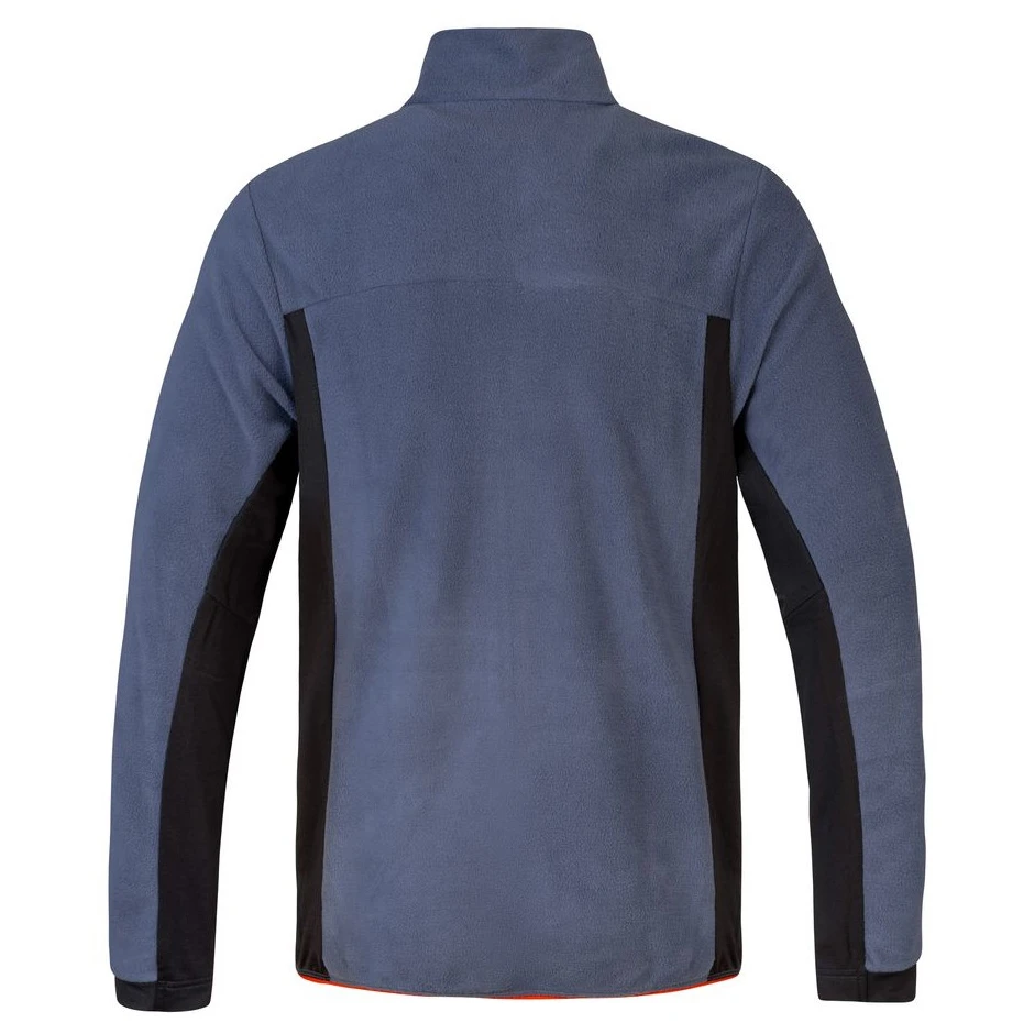 A pulóver kényelmes szabású, fordított hosszú cipzárral és állógallérral, anatómiailag formázott, passzéval ellátott ujjakkal és gumival szegélyezett alsó szegéllyel rendelkezik, amely biztosítja a kényelmes viseletet és a hővédelmet. A praktikus, cipzáras főzsebek és a cipzáras mellkaszseb elegendő helyet biztosítanak a mozgás közbeni apróságok számára. A Regular Fit szabás lehetővé teszi a könnyű rétegezést kabát alatt vagy önálló viselést.
