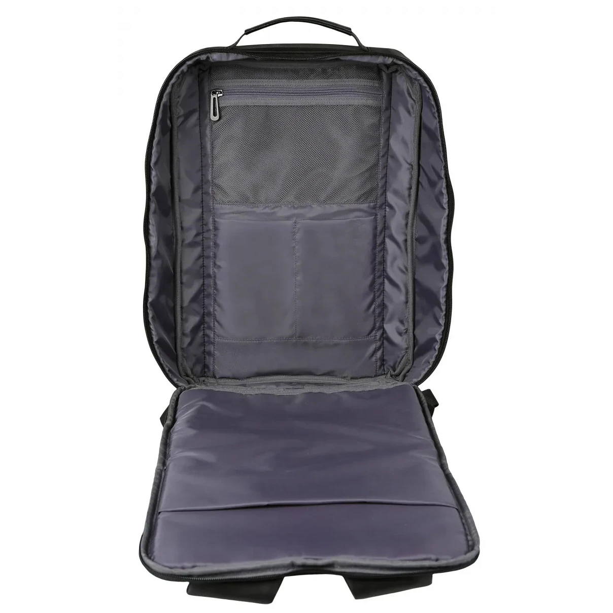 A hátizsák kiváló minőségű, 210D vízlepergető bevonattal ellátott poliészterből készült. A kényelmes viseletet az ergonomikusan kialakított vállpántok és a párnázott hátlap biztosítják EVA-formázással. Praktikus elem továbbá a bőrönd fogantyújára varrt pánt és a rejtett hátsó cipzáras zseb.
