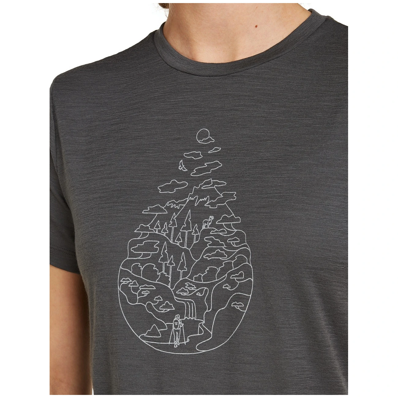 Női funkcionális rövid ujjú póló Icebreaker Women Merino 150 Tech Lite SS Tee Hike Path egész éves használatra és bármilyen kalandra tervezve. A 100% finom és könnyű merinó gyapjú anyagnak köszönhetően a póló természetesen ellenáll a szagoknak, és tökéletesen szabályozza a testhőmérsékletet – télen melegen tart, míg melegben hűsít.
