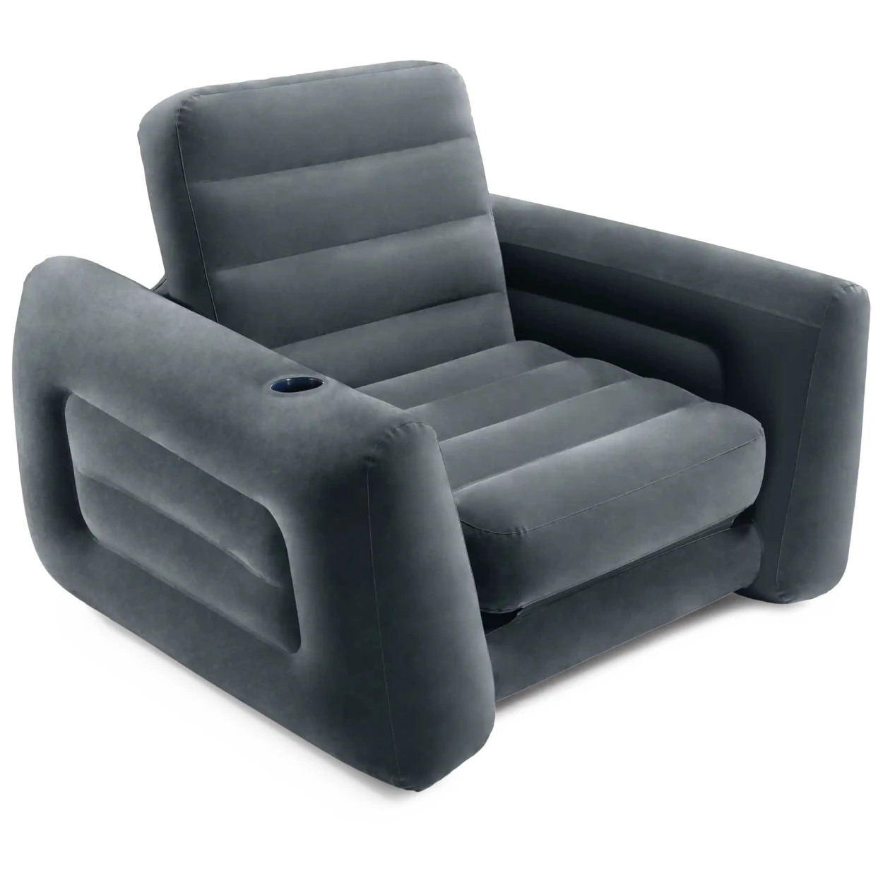 Az Intex Pull-out Chair felfújható fotel egy luxus szürke, kihajtható fotel, amelyet úgy terveztek, hogy Ön a lehető legkényelmesebben érezze magát. A felfújható szerkezetnek köszönhetően ideális nappaliba, diákszobába, játékszobába, vagy extra fotelként vendégek számára, amikor gyorsan extra ülő- vagy pihenőhelyre van szükség.