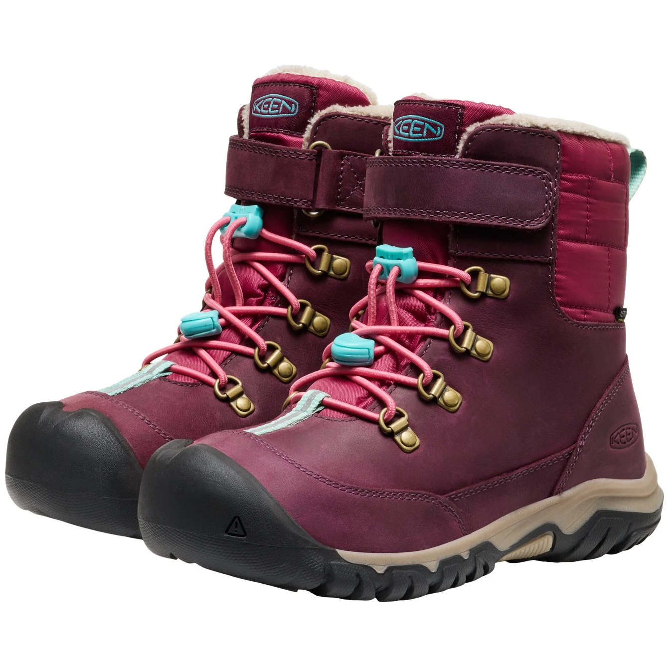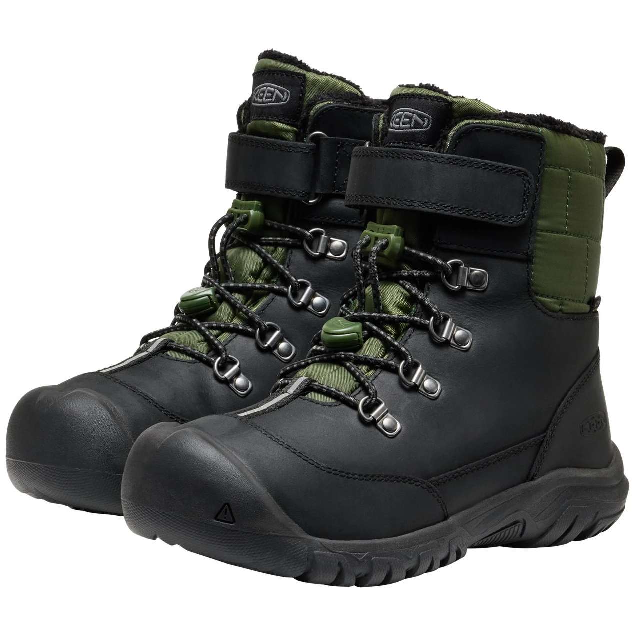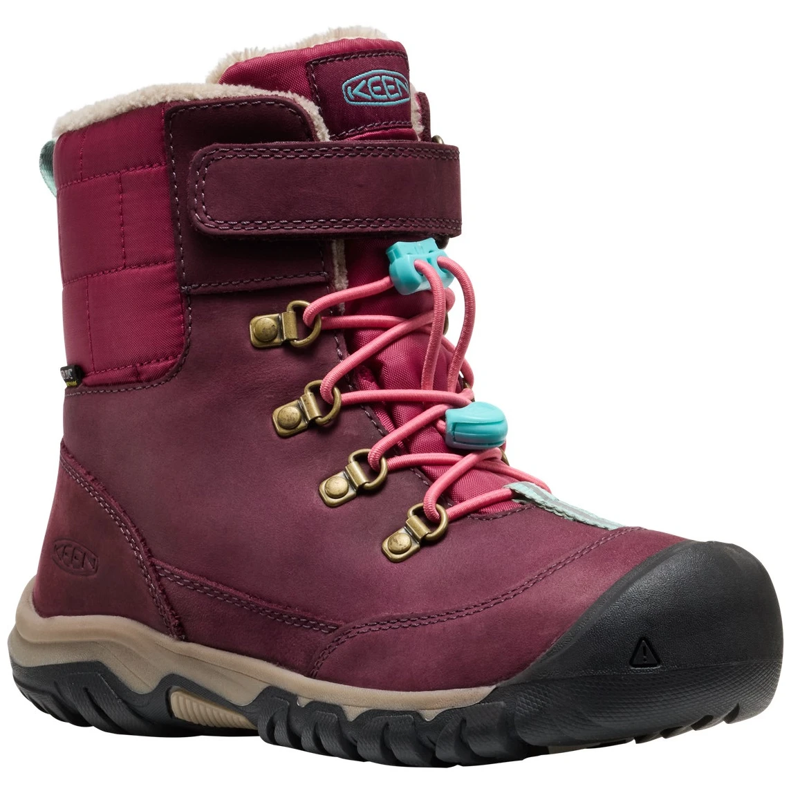 A Kanibou WP egy gazdagon bélelt gyerek téli cipő a Keen márkától. A felső anyag kiváló minőségű, vízálló és környezetvédelmi tanúsítvánnyal rendelkező bőrből készült, amely a KEEN.DRY membránnal és a PFAS-mentes impregnálással kombinálva nedves körülmények között is tökéletes védelmet nyújt. A megfelelő hőkomfortot a fleece bélés, a KEEN.WARM technológia (akár -32 °C-ig), valamint a hőt megkötő Thermal Heat Shield talpbetét biztosítják. A cipő belseje ECO ODOR CONTROL technológiával kezelt a kellemetlen szagok csökkentése érdekében. A KEEN.FUSION gumis talp kiváló minőségű mintázattal díszített, megakadályozza a nem kívánt csúszást, könnyű és tartós. A húzózsinórral és tépőzárral ellátott fűzőrendszer biztosítja a problémamentes felhúzást.