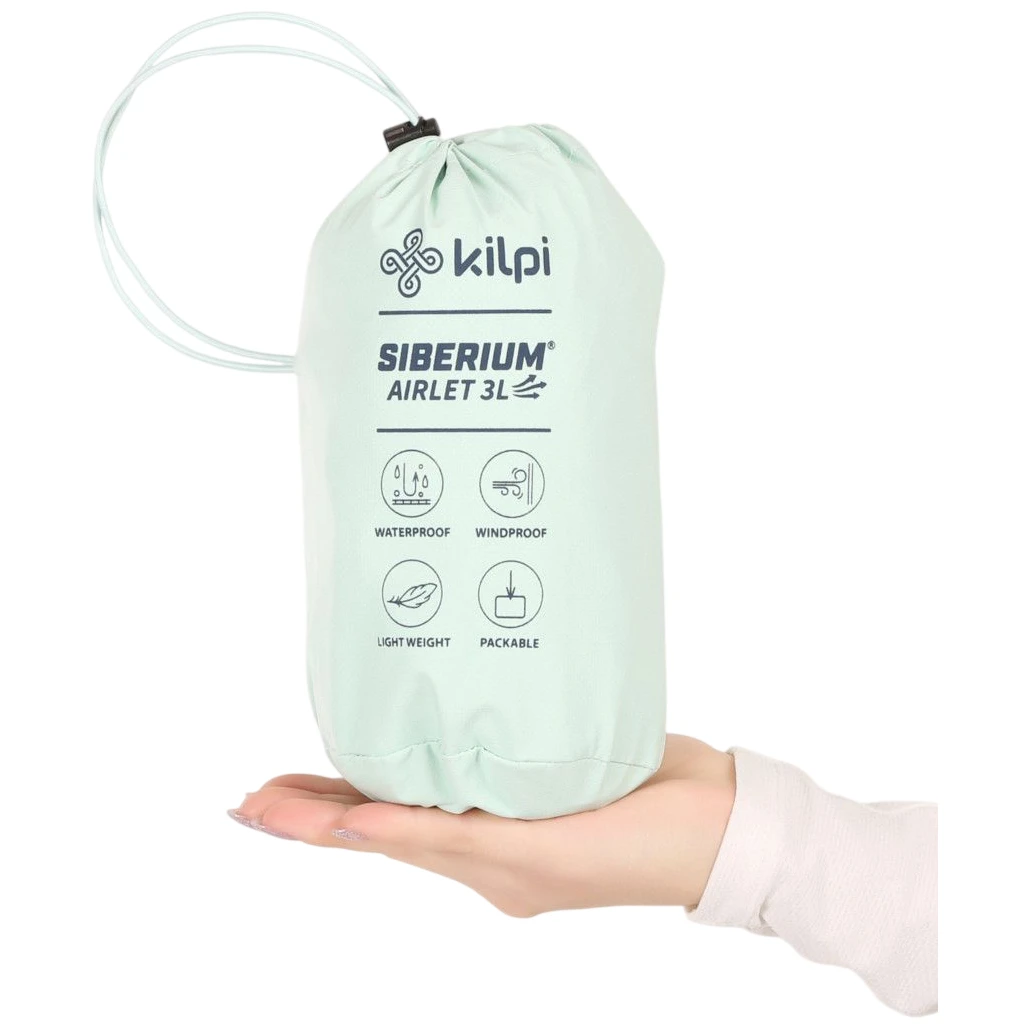 A dzseki fő előnye a vízállóság SIBERIUM membránanyag ragasztott varratokkal, rendkívül magas légáteresztő képességgel és 20 000 mm/m2/24h vízállósággal. Ultrakönnyű anyag kiválóan összecsomagolható a dzsekihez mellékelt tasakba. A kabát súlya mindössze 200 g (36-os méretben). Két cipzáras zseb vízálló cipzárral szellőzőnyílásként is szolgál a maximális szellőzés érdekében.