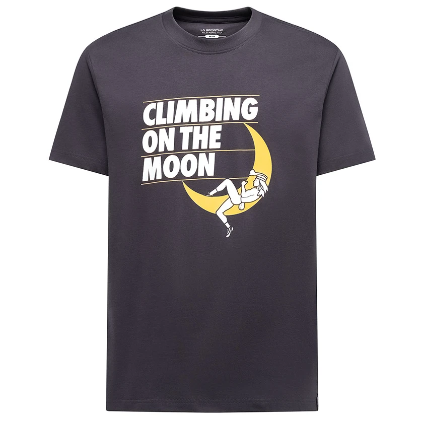 A La Sportiva Moon Rock T-Shirt M egy férfi póló organikus pamutból, amelyet kifejezetten mászók és aktív életet élő férfiak számára terveztek – azoknak, akik értékelik a kényelmet és a stílust szabadtéri tevékenységeik során.