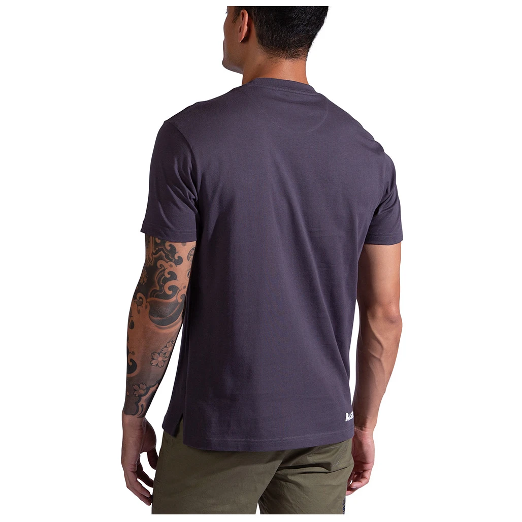 Ez a férfi rövid ujjú, vékony szabású póló puha és légáteresztő organikus pamutból készült, hogy mászás, boulderezés és mindennapi viselet közben is kényelmes legyen. A kerek nyakkivágás és a mellkason lévő, mászós témájú nyomott minta jellegzetes stílust kölcsönöz a pólónak.