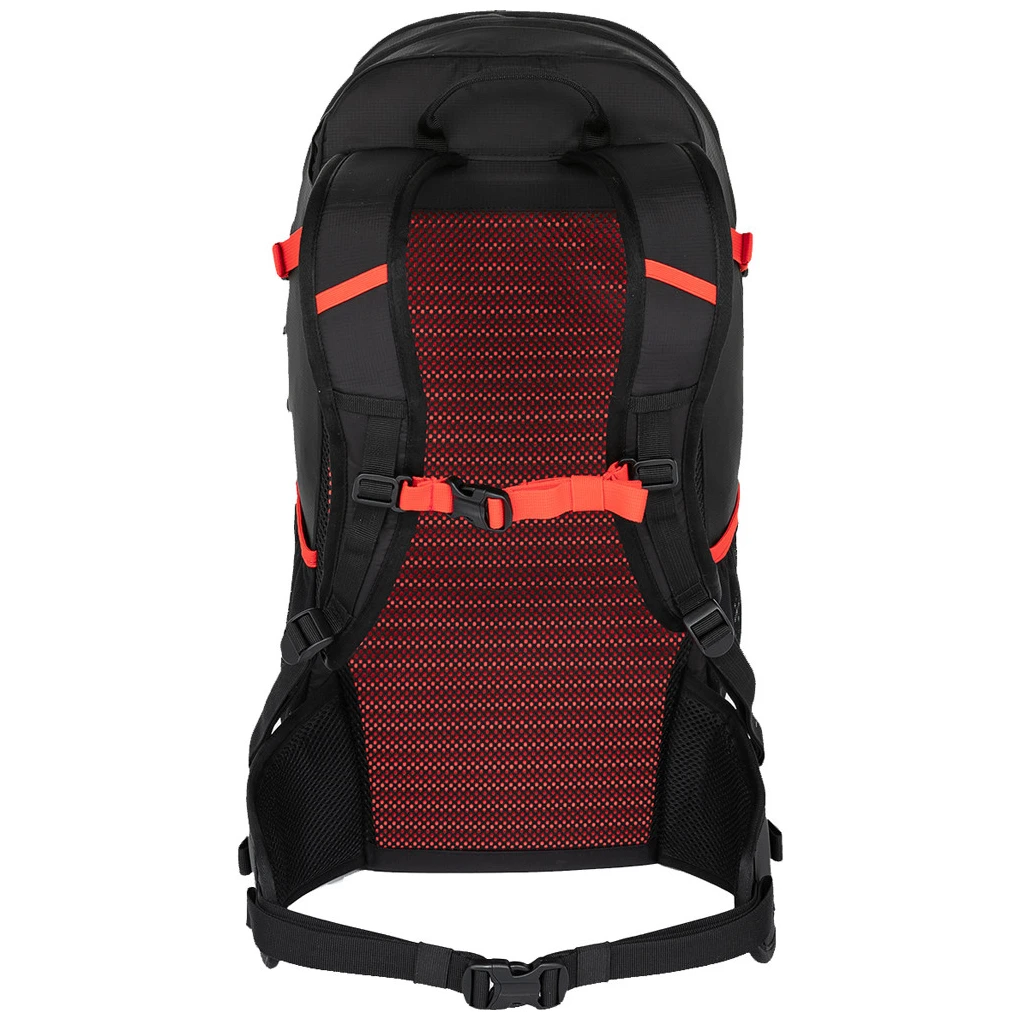 A hátizsák tartós Rip Stop anyagból készült, amely minimalizálja a kopás vagy szakadás kockázatát, és garantálja a hosszú élettartamot. A kényelmes viseletről a masszív SBS hátrendszer gondoskodik, amely egyben védi a hátizsák tartalmát is. Az anatómiailag formázott vállpántok, a derékpánt, a mellpánt és az oldalsó kompressziós hevederek segítenek a súly megfelelő elosztásában, és stabilitást biztosítanak még nehezebb terepen is.