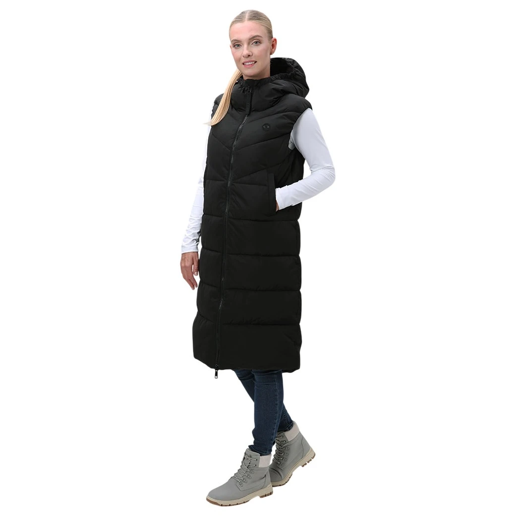 A Loap Tanja női hosszú mellény nagyszerű választás azokra a napokra, amikor még túl meleg a kabát, de szeretné megőrizni a kellemes komfortérzetet. Erről a Polytherm üreges szálakból készült szigetelés gondoskodik, amely kiválóan szigetel, ráadásul megőrzi a formáját. A DryTech vízlepergető bevonat megvéd a könnyű esőtől vagy hótól, így a kevésbé kedvező időjárás sem fog meglepetést okozni.