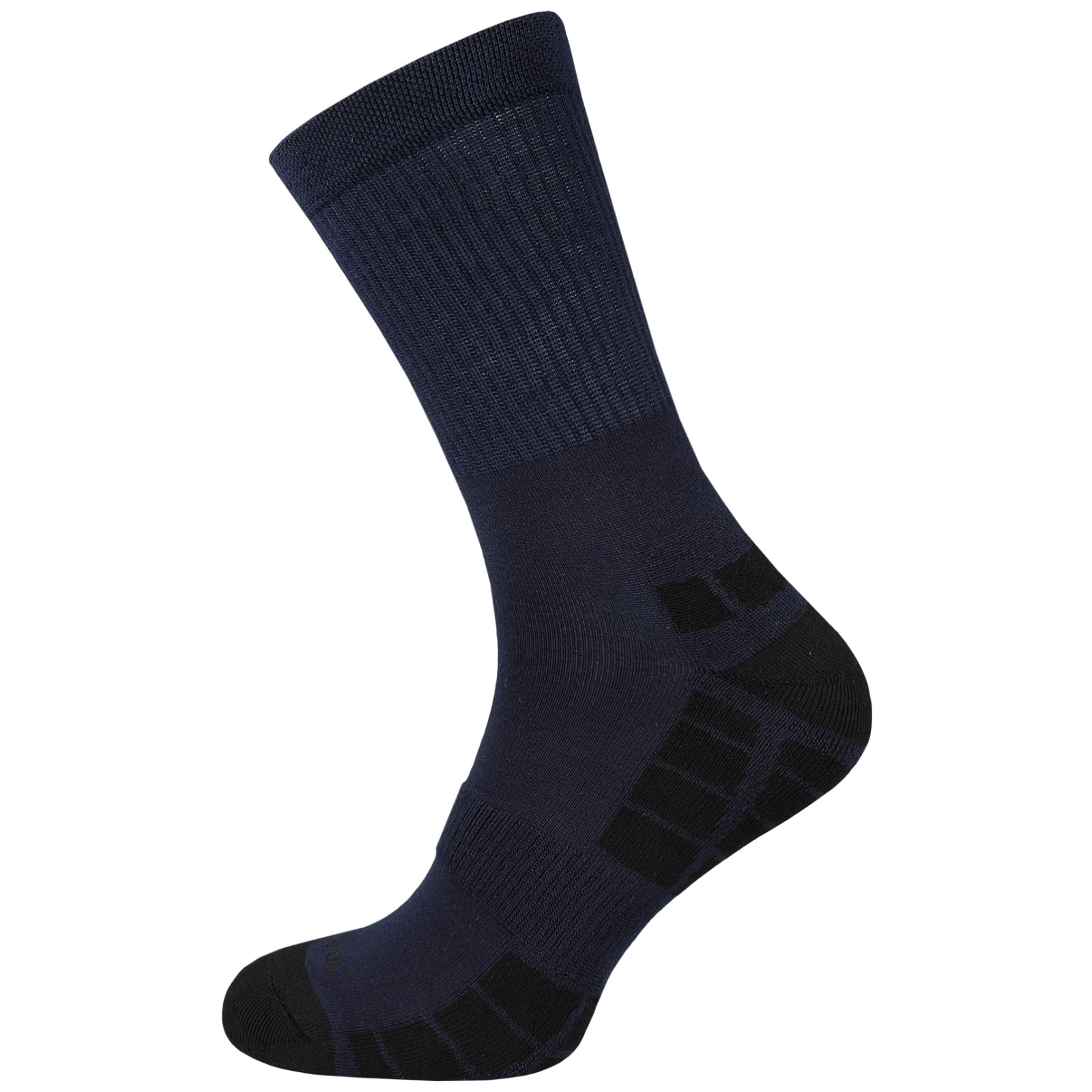 A megerősített talprész növeli a kopásállóságot, míg a rugalmas zóna a lábfejen a helyén tartja a zoknit és megakadályozza, hogy elcsússzon a cipőben. A speciálisan tervezett laza szegély nem nyomja a lábat és nem okoz vízhólyagokat. A lábujj rész lapos varrással van lezárva a maximális kényelem érdekében, elkerülve a nyomáspontokat.