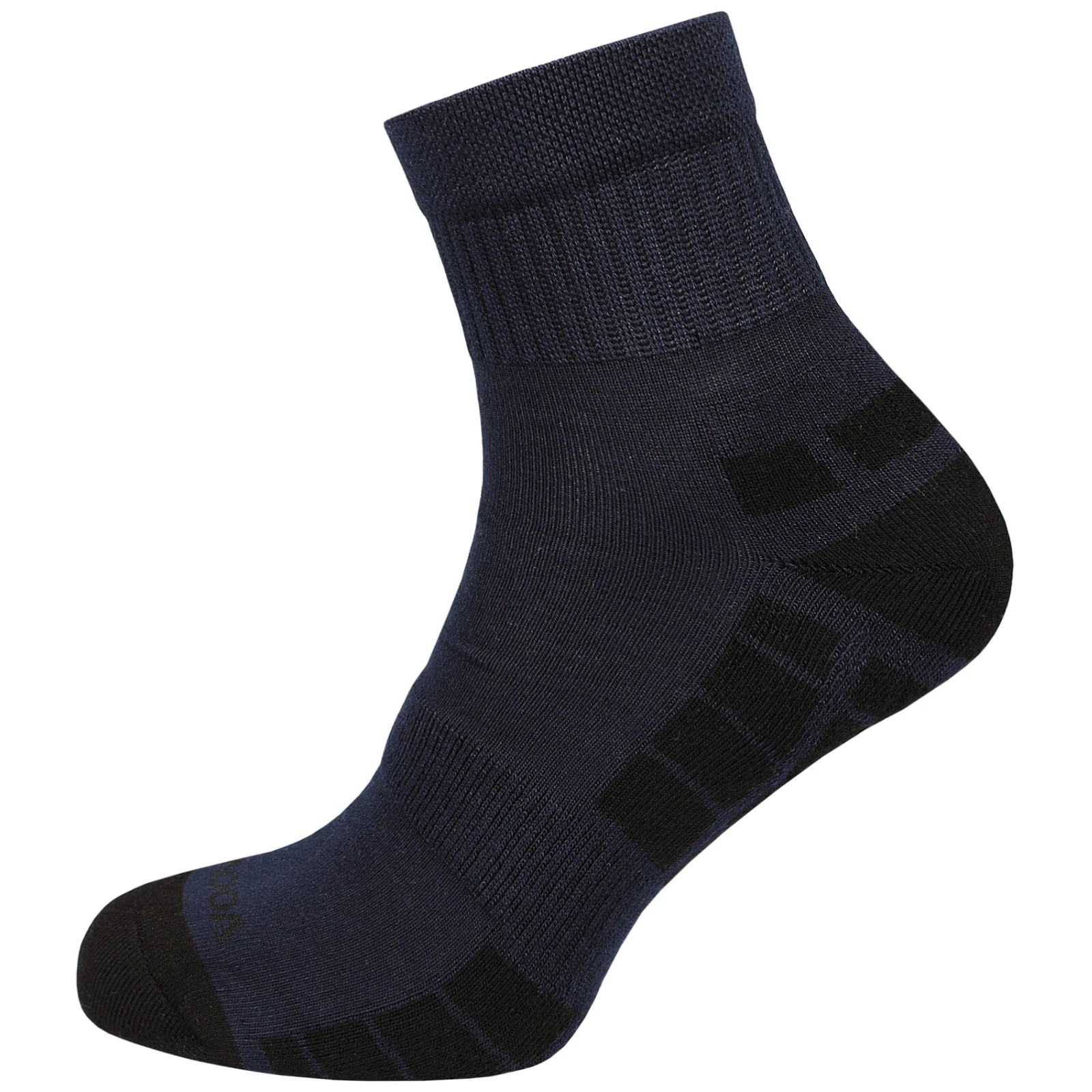 A megerősített talprész növeli a kopásállóságot, míg a rugalmas zóna a lábfejen a helyén tartja a zoknit és megakadályozza, hogy elcsússzon a cipőben. A speciálisan tervezett laza szegély nem nyomja a lábat és nem okoz vízhólyagokat. A lábujj rész lapos varrással van lezárva a maximális kényelem érdekében, elkerülve a nyomáspontokat.