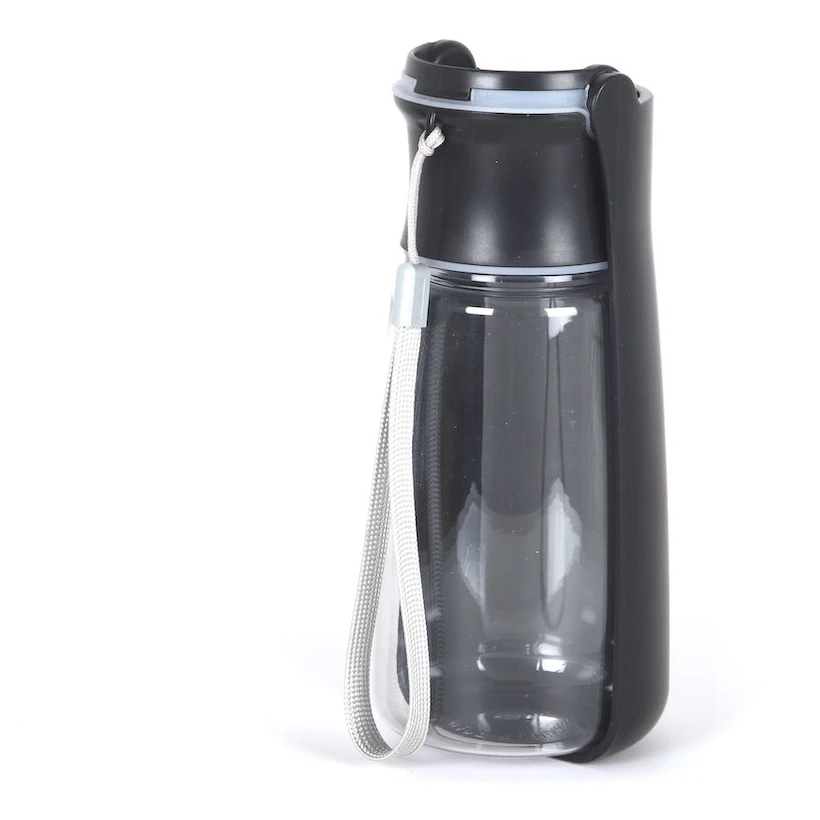 A palack erős műanyagból készült, és kibontva a fedél itatótálként szolgál. A víz adagolását gombbal aktiválhatod. A pánttal a csuklódra vagy a hátizsákodra is akaszthatod. A palackot könnyű tisztán tartani.