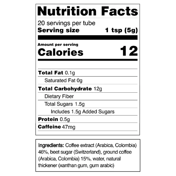 Nincs hozzáférése vízhez? Nem probléma! Ez a kávé annyira sokoldalú, hogy akár banánra vagy csokoládéra is kenhető krémként használhatja, így ízletes és élénkítő koffeinadaghoz juthat kalandjaihoz vagy sűrű napjaihoz.