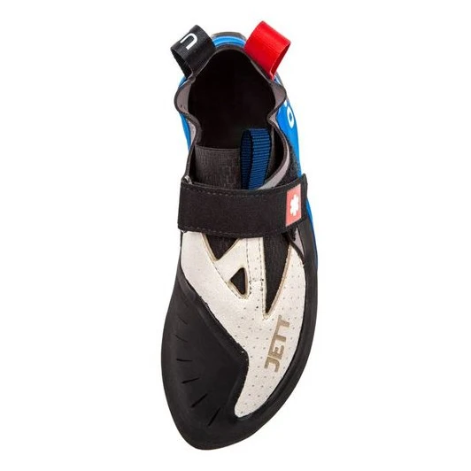 Az Ocún Jett S mászócipő modern, univerzális cipőt kínál, amely a kényelem és a sportteljesítmény szem előtt tartásával készült. A lábfej kialakítása enyhén aszimmetrikus, semleges lábfejjel és tágas orrrésszel rendelkezik, amely jól illeszkedik a normál és szélesebb lábfejekhez is. Az Asymmetrix jól bevált modelljéből kiinduló sarok biztos támasztékot nyújt a nehezebb lépéseknél is.