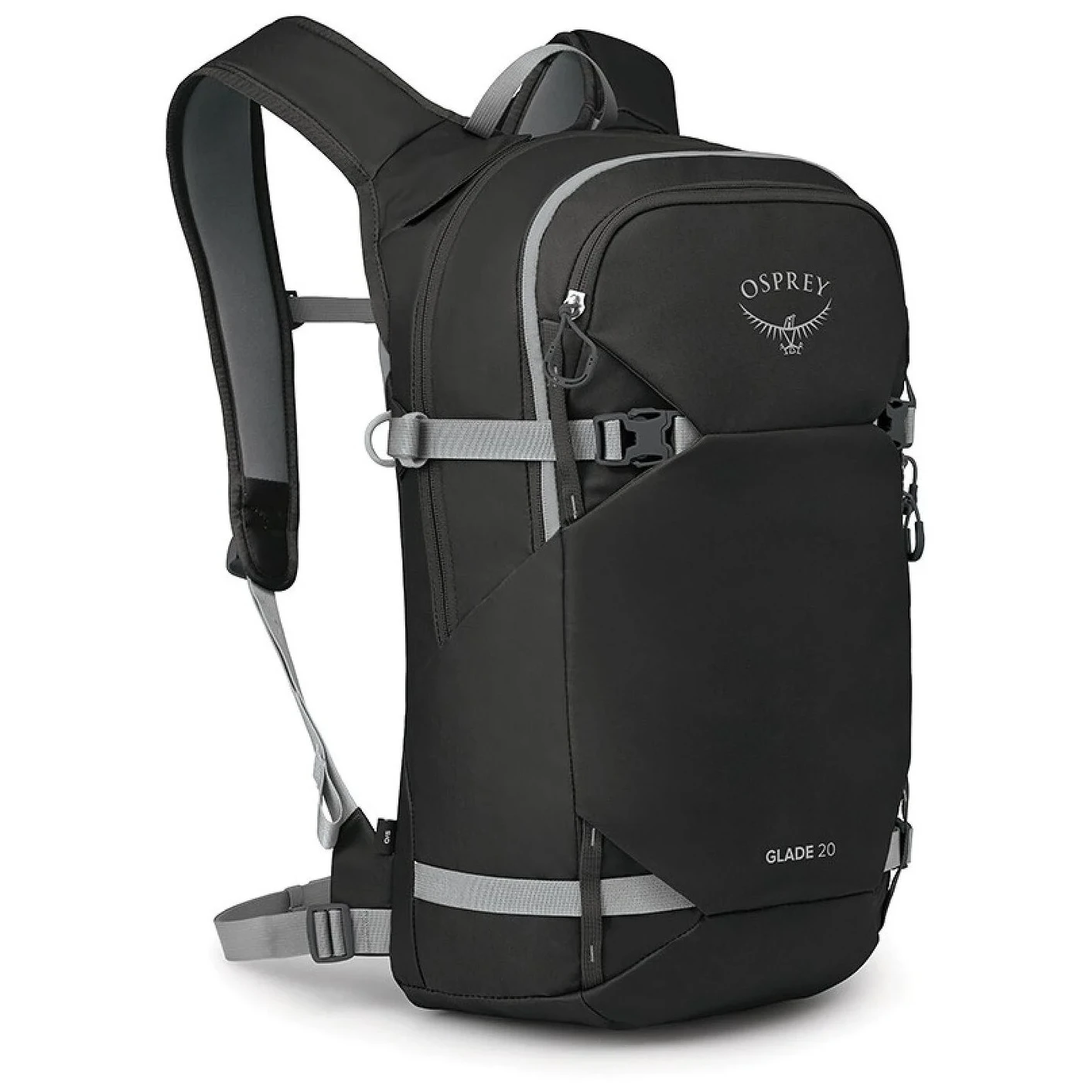 A Glade 20 hátizsák átgondolt rendszert kínál a felszerelés szállítására – a sílécek átlósan vagy A alakban rögzíthetők, a snowboard vagy a hótalpak pedig kényelmesen a elülső panelen. Természetesen külön rekesz áll rendelkezésre a lavinabiztonsági felszerelés számára, hogy minden szükséges dolog mindig kéznél legyen. A fő rekesz könnyen nyitható egy praktikus J-cipzárral, és belül egy zseb is található a ivózsák (külön megvásárolható) számára.