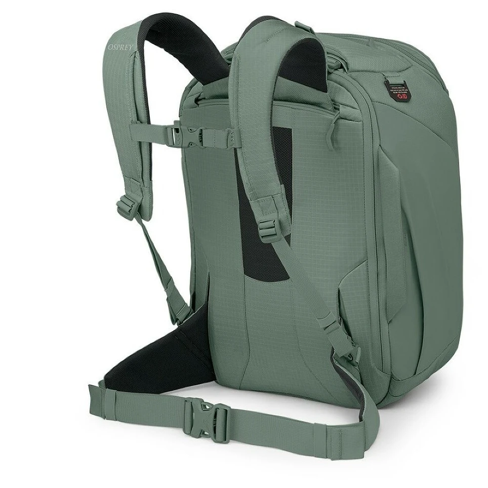 Az Osprey Porter 30 utazótáska tökéletes választás azok számára, akik megbízható társra vágynak, amelybe minden felszerelésük elfér. A legnagyobb előnye az állítható hátrendszer, amely lehetővé teszi, hogy a táskát kényelmes hátizsákká alakítsák. Repülőtéri feladás vagy szállítás esetén ez a hátrendszer elrejthető egy külön cipzáras zsebbe. A hátrendszer jól szellőző, párnázott vállpántokból, mellkaspántból és ErgoPull csattal ellátott derékövből áll. A táska körül elhelyezett párnázott fogantyúk megkönnyítik a kezelhetőséget a szállítás vagy feladás során.