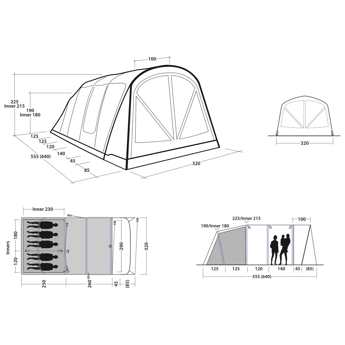 A Florida 5 Air egy felfújható családi sátor az Outwell dán márkájú Premium Air kollekcióból, amely 5 fő részére kínál alvóhelyet két hálófülkében, tágas előszobával és előtetővel.