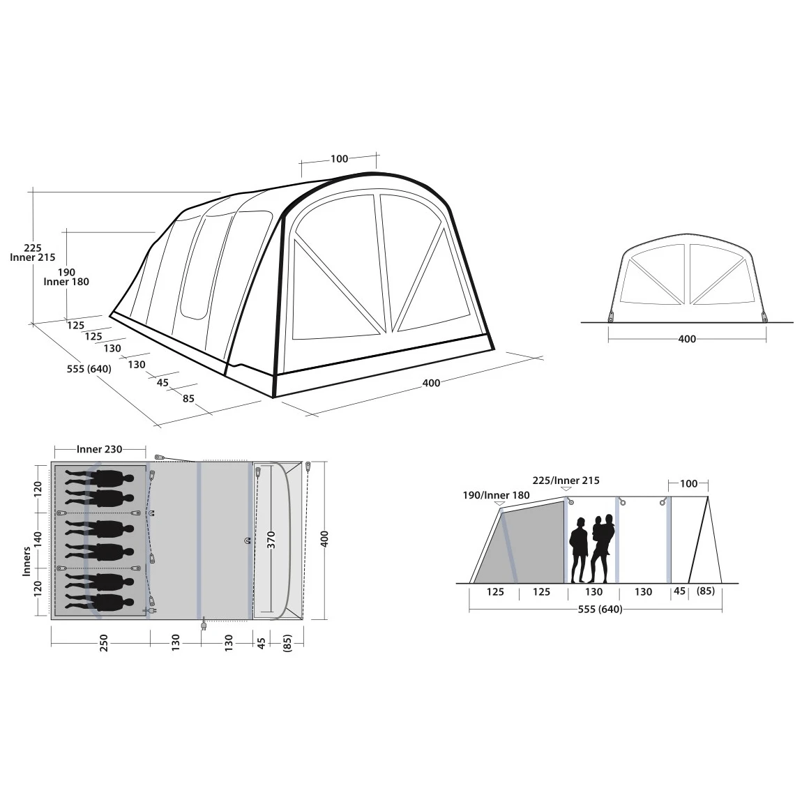 A sátorhoz külön megvásárolhatók az Air Repair pót-légkamrák, amelyek segítségével a sérült kamrákat könnyen és gyorsan kicserélheti. A sátor kompatibilis az Air Repair belső csövekkel: Tube Green A (zöld) és Tube Yellow E (sárga). Az előtér padlóján a maximális kényelem érdekében eredeti szőnyeg található. A padlót egy méretre szabott alátét védi.