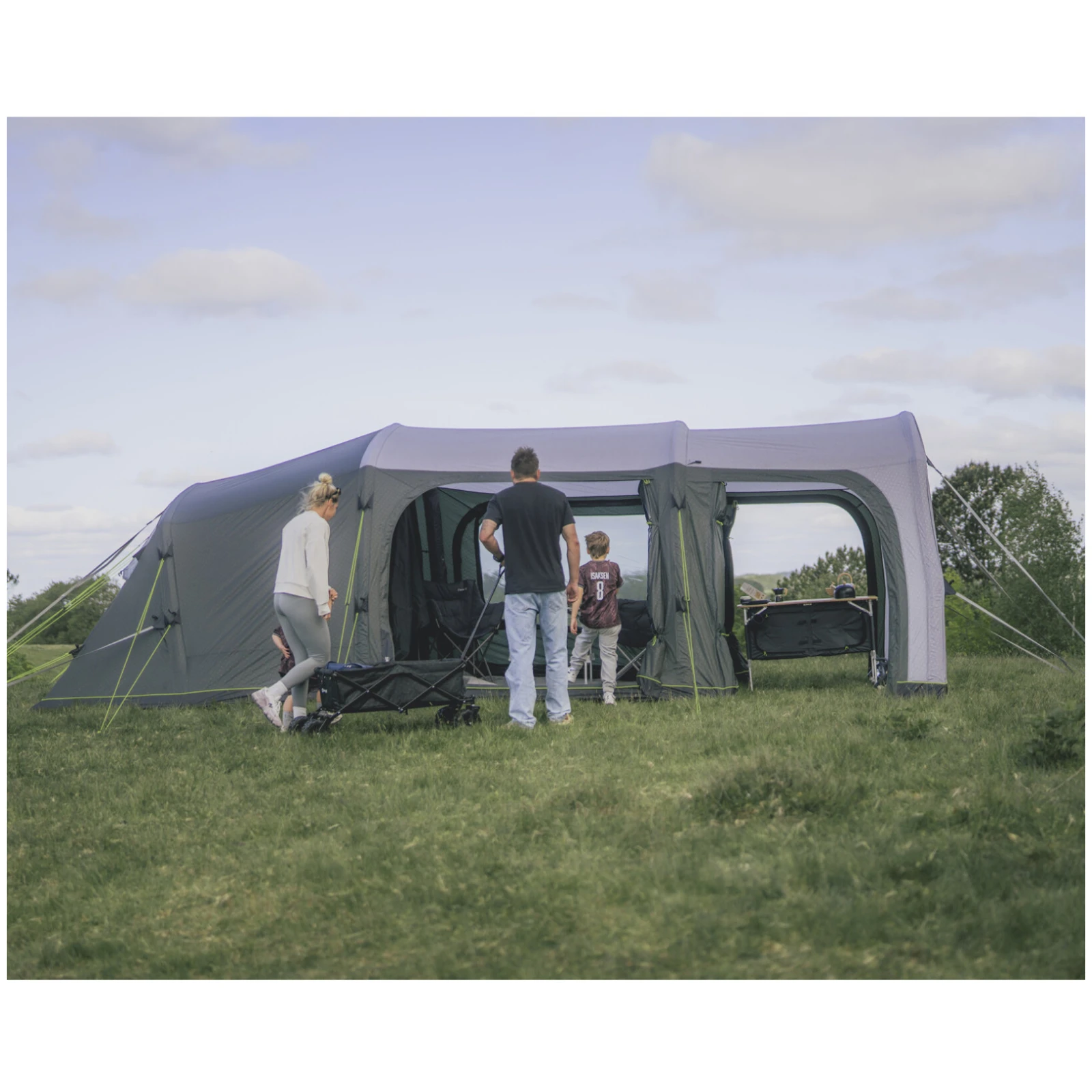 Az Iowa 6 Air egy felfújható családi sátor a dán Outwell márka Premium Air kollekciójából, amely 6 fő számára kínál alvóhelyet három hálószobában, tágas előtérrel és tetővel.