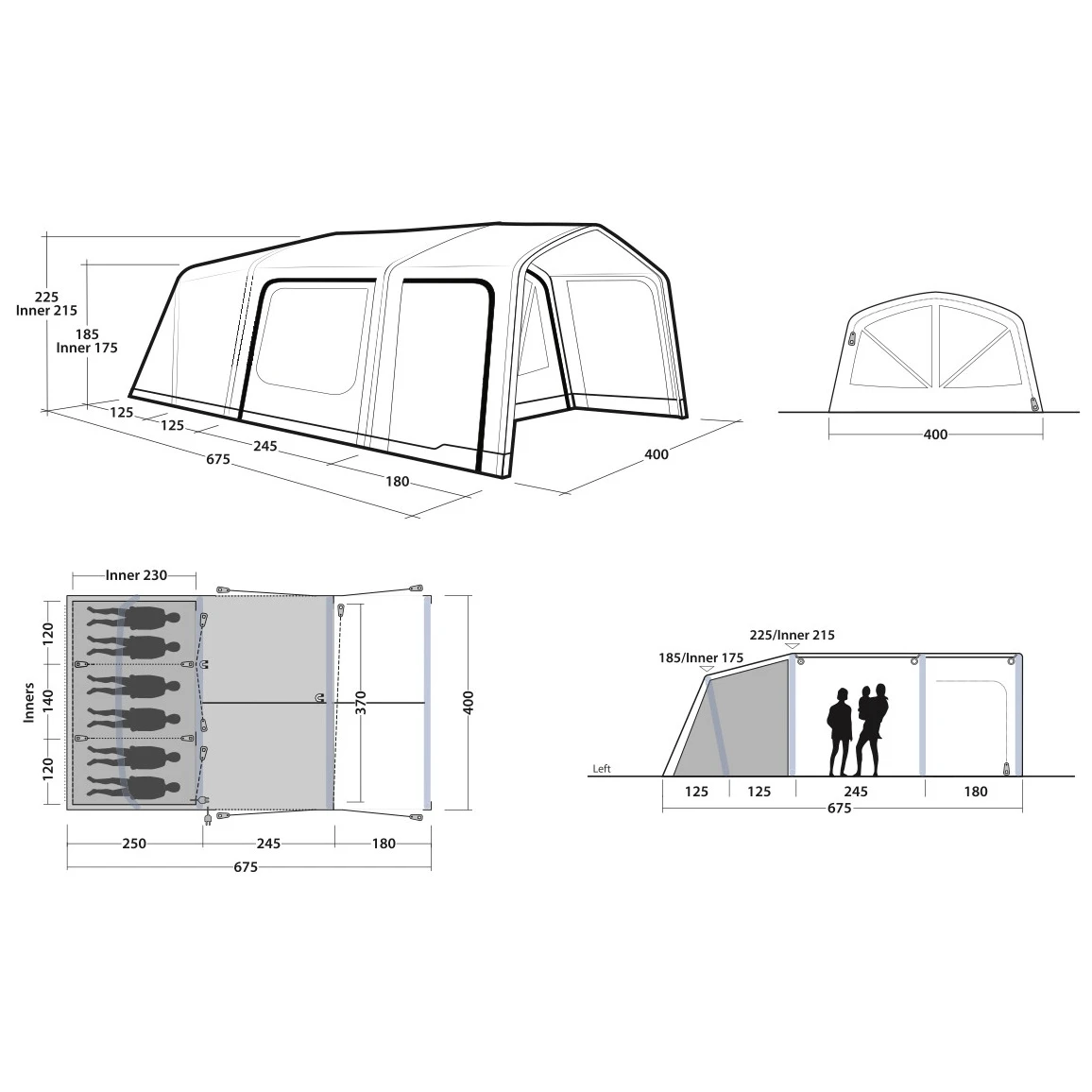A sátorhoz külön megvásárolhatók az Air Repair pót-légkamrák, amelyek segítségével a sérült kamrákat könnyen és gyorsan kicserélheti. A sátor kompatibilis az Air Repair - Tube kit 2 (piros) és a Tube Yellow E (sárga) sátorral. A maximális kényelem érdekében az előtérben egy eredeti szőnyeg áll rendelkezésre. A padlót egy méretre szabott alátét védi.