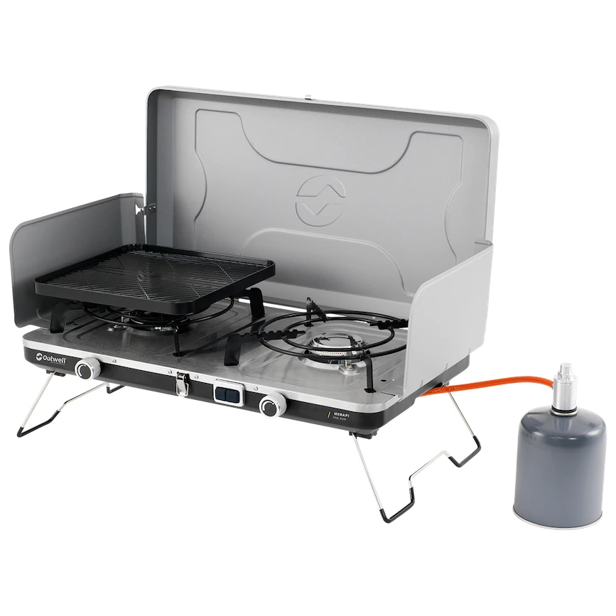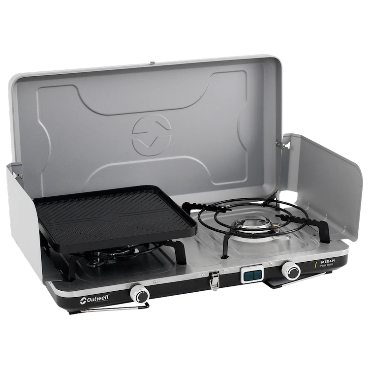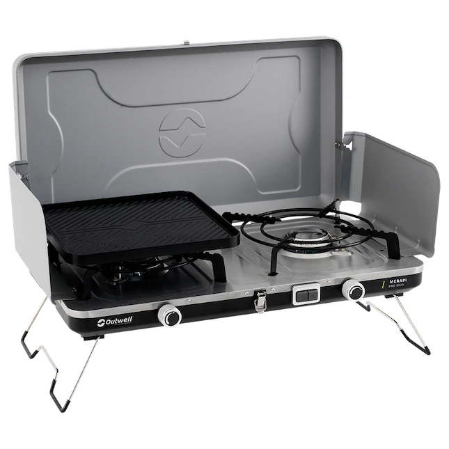 A dán Outwell Merapi Pro Duo Deluxe kétégős gázfőzője/grillje nélkülözhetetlen segítőtárs a kempingben és a kertben egyaránt. Az acél és rozsdamentes acél anyag garantálja a hosszú élettartamot.