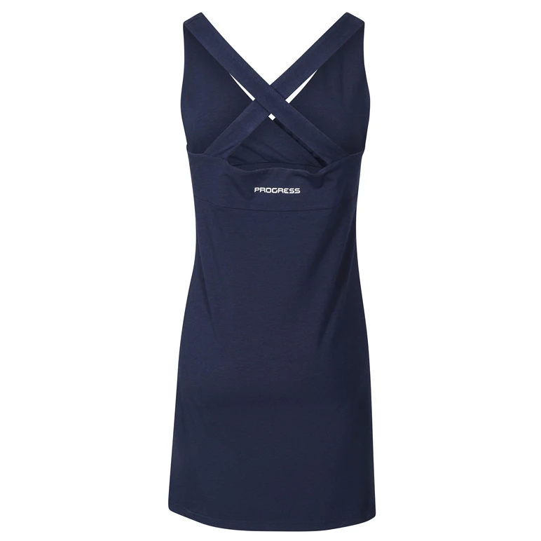 A Progress Emily bambuszos női sportruha bambusz és pamut keverékéből készült, amely tökéletes légáteresztést, könnyedséget és kellemes érzést garantál viselése közben. A bambusz viszkóz természetes antibakteriális tulajdonságokkal rendelkezik. Melegben a bambusz természetesen hűvös tapintású, és ez a tulajdonság a kötött anyag tulajdonságaiban is megmarad. A nyári szabás pántokkal, elválasztással és laza szoknyával maximális kényelmet és szabadságot biztosít. A ruha alkalmas nyári túrázáshoz és szabadidős viselethez.