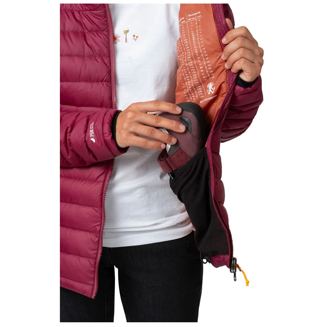 A Rafiki Project W női bélelt kabátot minden mászó értékelni fog a sok praktikus megoldás miatt. A szigetelőanyag jó minőségű kacsapehely RDS tanúsítvánnyal rendelkezik, amely nemcsak kiváló hőszigetelő tulajdonságokkal bír, hanem könnyű és kiválóan összecsomagolható is. A külső újrahasznosított nylon ripstop vízlepergető DWR kezeléssel rendelkezik. A mászók biztosan értékelni fogják a kétutas cipzárt vagy a belső hálós zsebeket, amelyekben a mászócipő is elfér.