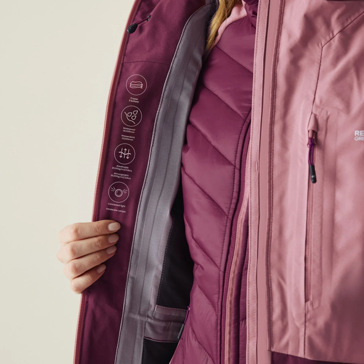 A Regatta Carletta 3 az 1-ben női kabát stílusos, kényelmes és megbízhatóan véd az eső és a hideg ellen. Ez egy rendkívül sokoldalú darab a ruhatárában, mivel két részből áll. Kapucnis külső kabát vízálló és tartós, a belső hibrid kabát pedig megbízhatóan melegen tart a hideg időben. Együtt vagy külön-külön is viselhető mindkét réteg.