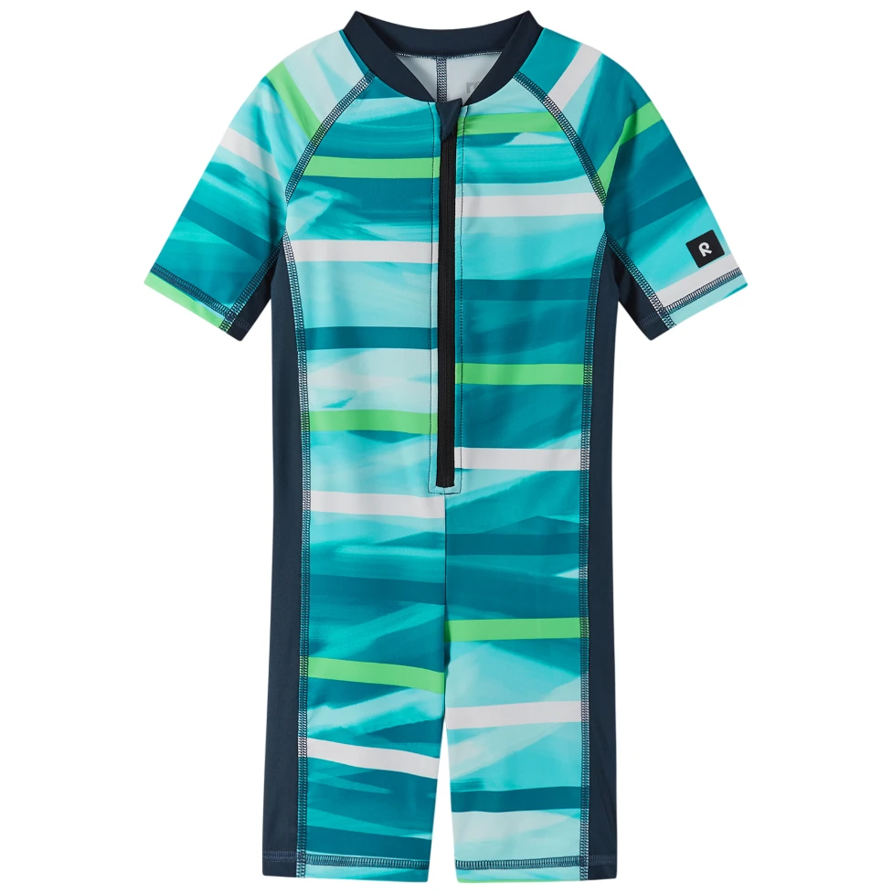 A Reima márkájú Vesihiisi fürdőoverall nagyszerű választás a forró időben való vízi játékokhoz. Hatékony védelmet nyújt a nap káros sugarai ellen az UV 50+ faktornak köszönhetően. A teljes hosszában cipzáras kialakítás megkönnyíti az overall felvételét.