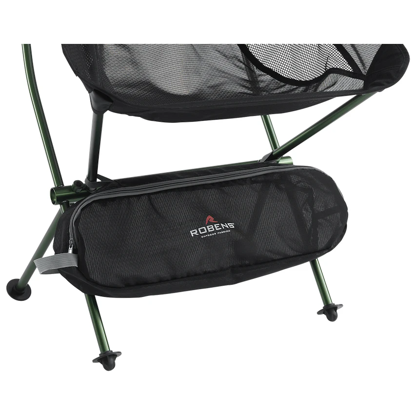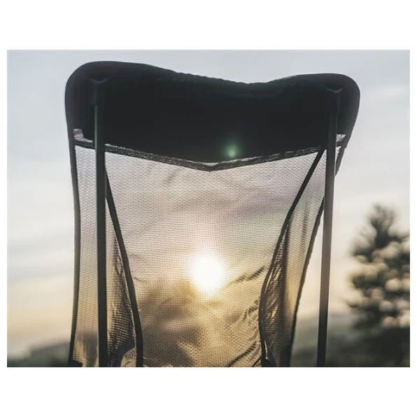 A tartós alumínium konstrukciónak köszönhetően akár 120 kg-os teherbírással rendelkezik. A széles lábak stabilak puha felületen. A masszív nejlon ripstop anyag kiváló háttámlát biztosít, különösen a magas háttámlával kombinálva. A hálós panelek javítják a légáteresztést és a kényelmet. A csomag tartalmaz egy szállítótáskát, amely tárolóként is szolgál.