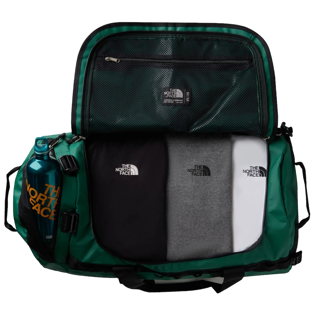 A The North Face Base Camp Duffel - M egy rendkívül strapabíró utazótáska 71 literes űrtartalommal. A modell a korábbi évek sikeres Duffles modelljére épül, de az anyagminőség és a funkcionalitás javult. A fő rekesz egy tartós cipzárral ellátott fedőn át érhető el, belül egy rendszerezővel kiegészített belső hálós zseb található. A táska vízálló zsebbel felszerelt, amelyben vizes ruhákat vagy cipőket is lehet tárolni, négy kompressziós pánttal, fogantyúkkal a kézben való hordozáshoz és ergonomikus kialakítású vállpántokkal kiegészített a háton történő kényelmes szállításhoz.