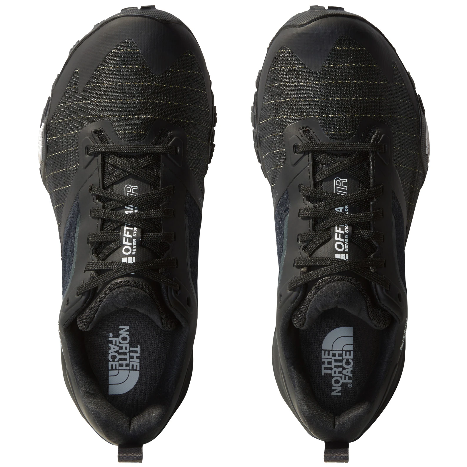 A The North Face Offtrail TR GORE-TEX cipő SURFACE CTRL™ talppal rendelkezik, 5 mm-es mintázattal, amely kiváló tapadást és stabilitást biztosít A nagy rugalmasságú EVA középtalp 24 mm-es sarokcsillapítással kényelmet nyújt még hosszabb emelkedők során is. Az elülső gumírozott borítás fokozza a védelmet és a tartósságot.