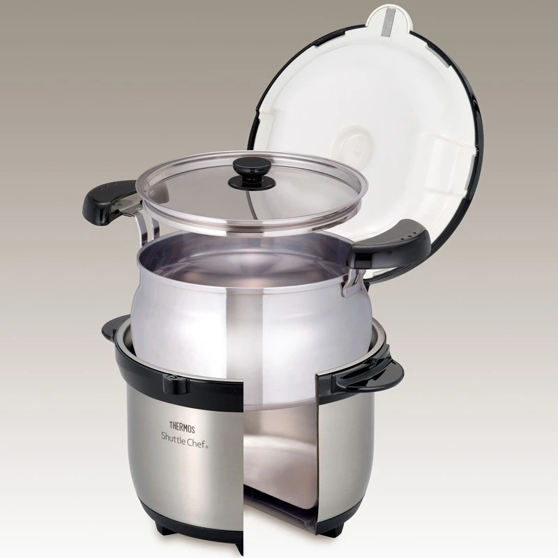 A Thermos Shuttle Chef egy vákuumszigetelt termikus főzőedény, amely gazdaságos, egészséges és kényelmes főzést tesz lehetővé, állandó felügyelet nélkül. 1989-ben mutatták be Japánban, és azóta nagy népszerűségre tett szert a szabadtéri tevékenységek kedvelői körében, mivel könnyen elkészíthetők az ételek a nyaralókban, kempingekben vagy kerti családi összejöveteleken. Otthoni, hétköznapi főzéshez is kiválóan alkalmas. Az elve egy rövid ideig tartó felfűtés a hagyományos főzőlapon, majd a saját hőmérsékletének megtartásával történő főzés az izolált edényben, további energia ráfordítása nélkül.